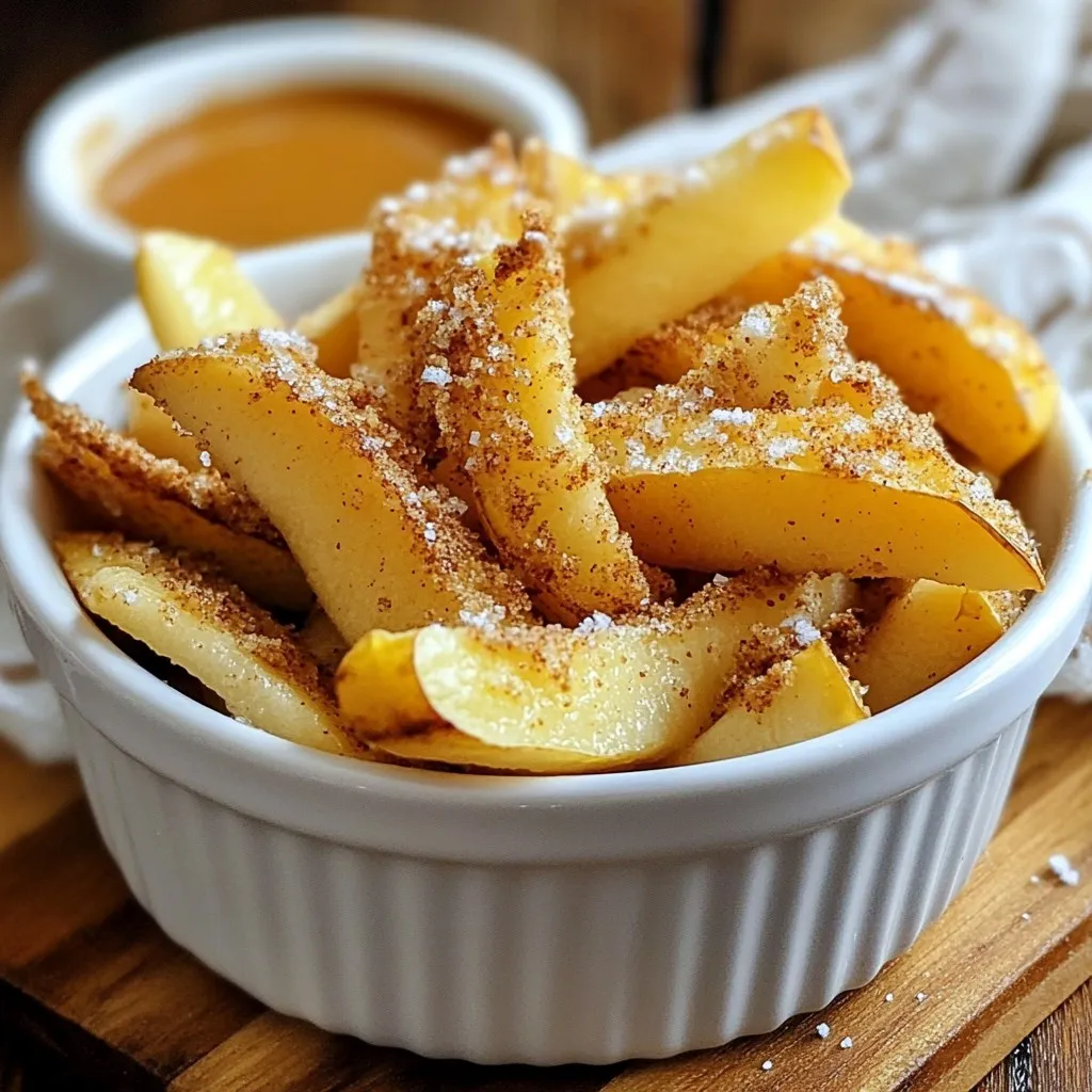 Crispy and delicious apple fries made in the air fryer, perfect for a sweet snack or dessert.
