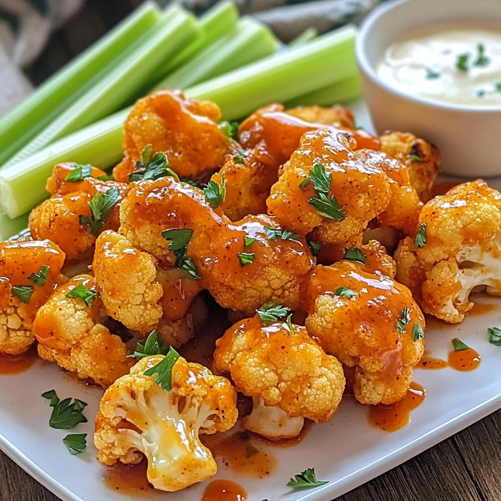 - 1 large head of cauliflower, cut into bite-sized florets - 1 cup all-purpose flour - 1/2 cup water - 1 teaspoon garlic powder - 1 teaspoon onion powder - 1 teaspoon smoked paprika - 1/2 teaspoon salt - 1/4 teaspoon black pepper - 1/2 cup buffalo sauce (store-bought or homemade) - 1 tablespoon olive oil To make this dish, you need fresh cauliflower. Choose a large head with tight, white florets. This helps get a great texture when cooking. - 1 teaspoon garlic powder - 1 teaspoon onion powder - 1 teaspoon smoked paprika - 1/2 teaspoon salt - 1/4 teaspoon black pepper These seasonings add nice flavors to the batter. I love smoked paprika for its mild, smoky taste. It gives the cauliflower a warm flavor that pairs well with buffalo sauce. - Fresh parsley, chopped (for garnish) - Optional: celery sticks and ranch dressing for serving Chopped parsley adds color and freshness. Celery sticks and ranch dressing balance the heat of the buffalo sauce. It’s a classic combination that many enjoy. {{ingredient_image_2}} To start, rinse the cauliflower under cool water. This helps remove any dirt. Next, cut the cauliflower into bite-sized florets. Aim for uniform pieces to ensure they cook evenly. After chopping, pat the florets dry with a paper towel. Removing excess moisture is key for a crispy texture. In a medium bowl, mix the flour, water, garlic powder, onion powder, smoked paprika, salt, and black pepper. Whisk until you have a smooth batter without lumps. This thick batter will stick well to the cauliflower. It gives each piece a tasty coating. Preheat your air fryer to 390°F (200°C) for about 5 minutes. This step is crucial for crispiness. Lightly grease the air fryer basket with olive oil. Place the battered cauliflower florets in a single layer, avoiding overcrowding. Cook them for 12–15 minutes, shaking the basket halfway through. This ensures even cooking and crisping. When they turn golden brown, transfer the florets to a bowl and drizzle with buffalo sauce. Toss gently to coat each piece. Return them to the air fryer for another 3–5 minutes. This final step sets the sauce and enhances the flavor. Afterward, serve them hot, topped with fresh parsley. To get that perfect crispy bite, follow these steps: - Dry the cauliflower: After rinsing, make sure to pat the florets dry. This helps them crisp up well. - Use a thick batter: Mix the flour, water, and spices until smooth. A thick batter sticks better. - Don’t overcrowd the basket: Place the florets in a single layer. This allows hot air to circulate and crisp them evenly. - Preheat the air fryer: Always preheat it to 390°F (200°C) for about 5 minutes. This is key! - Shake halfway through: Shake the basket during cooking to help them cook evenly. You can make your buffalo cauliflower as spicy as you want. Here’s how: - Mild: Use a bit less buffalo sauce. Try starting with 1/4 cup. - Medium: Stick to the full 1/2 cup. This is the standard. - Hot: Add extra buffalo sauce or use a hotter sauce. - Customize: Mix in some cayenne pepper or chili powder to the batter for more heat. Cooking time is important for great results: - Cook for 12–15 minutes: This makes them golden and crunchy. - Final toss: After adding buffalo sauce, air fry for 3–5 more minutes. This helps the sauce stick. - Check for doneness: If they look golden and crisp, they are ready! Adjust time as needed for your air fryer model. These tips help you create a snack that is not just tasty but crispy and full of flavor! Pro Tips Choose the Right Cauliflower: Look for a large head of cauliflower that is firm and free of blemishes. Fresh cauliflower will yield the best flavor and texture for your dish. Make It Gluten-Free: Substitute all-purpose flour with a gluten-free flour blend or almond flour to accommodate gluten-sensitive guests while maintaining a delicious crunch. Experiment with Spices: Feel free to customize the batter by adding your favorite spices, such as cayenne pepper for extra heat or cumin for a unique flavor twist. Air Fryer Capacity: Avoid overcrowding the air fryer basket. Cooking in batches ensures even cooking and allows each floret to become crispy without steaming. {{image_4}} You can easily make this dish gluten-free. Instead of all-purpose flour, use gluten-free flour. Rice flour or chickpea flour works well. Both create a nice batter that sticks to the cauliflower. Just follow the same steps in the recipe. You’ll get the same crispy texture without the gluten. Buffalo sauce is great, but feel free to mix it up! You can use BBQ sauce for a sweet twist. If you like it hot, try a spicy Asian sauce like sriracha. You can also blend sauces for a unique flavor. Mixing buffalo sauce with honey gives a sweet and spicy kick that many love. Don’t stop at just cauliflower! You can add other veggies to your air fryer. Try using broccoli or Brussels sprouts for variety. Cut them to similar sizes for even cooking. Toss them in the batter just like the cauliflower. This way, you’ll have a colorful and tasty mix! After you enjoy your Air Fryer Buffalo Cauliflower, store leftovers in an airtight container. Make sure they cool down first. Proper storage keeps them fresh for 3 to 4 days in the fridge. If you want to keep them longer, consider freezing. Reheat the cauliflower in your air fryer for the best results. Set it to 350°F (175°C) and cook for about 5 minutes. This helps restore the crispiness. You can also use an oven. Simply place them on a baking sheet and heat at 350°F (175°C) for about 10 minutes. Microwaving is quick, but it may make them soggy. To freeze buffalo cauliflower, place cooled florets in a single layer on a baking sheet. Freeze them for 1 to 2 hours until solid. Then, transfer them to a freezer-safe bag or container. They can last up to 3 months in the freezer. When you're ready to enjoy them, you can cook them straight from frozen. Just add a few extra minutes to the air frying time. You can use either fresh or frozen 