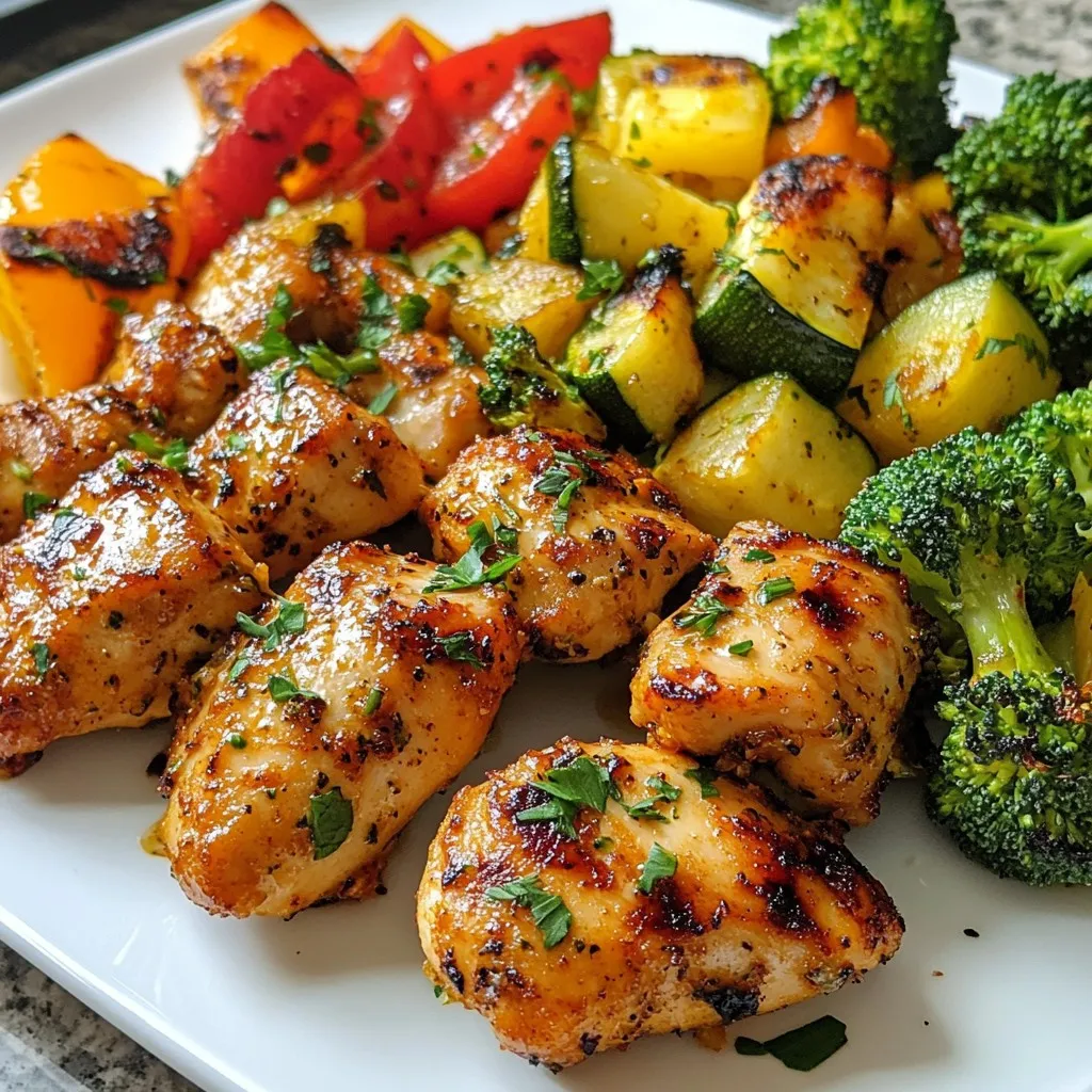 • Continue to cook for an additional 8-10 minutes. Check that the chicken has reached an internal temperature of 165°F (75°C) and ensure that the vegetables are tender with a slight char.