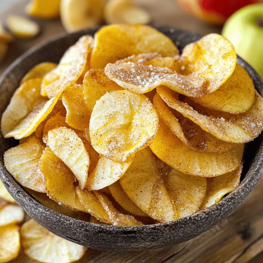 - 2 large apples (suggested varieties: Fuji or Honeycrisp) - 1 tablespoon ground cinnamon - 2 tablespoons granulated sugar - 1 tablespoon fresh lemon juice - Pinch of sea salt To make the best apple chips, choose firm apples. Fuji and Honeycrisp are great choices. They have the right balance of sweetness and crispness. Fresh apples taste better, too. Look for smooth skin and a firm feel. Avoid apples with bruises or soft spots. These signs mean they are past their prime. Want to mix things up? Try adding alternative spices like nutmeg or ginger. They add a warm flavor twist. For a different sweetness, use coconut sugar or honey. These options can make your apple chips unique and fun. Feel free to play with flavors and make it your own! First, you need to preheat your air fryer. Set it to 160°C (320°F). This heat helps create the perfect crispiness. You want it hot before adding the apple slices. Start by washing your apples under cool running water. Make sure to remove the cores. Next, slice each apple into thin rounds. Aim for slices about 1/8 inch thick. A mandoline slicer works best for even slices. This way, all your chips cook evenly. Now, let’s mix our cinnamon-sugar blend. In a small bowl, combine one tablespoon of ground cinnamon, two tablespoons of granulated sugar, and a pinch of sea salt. Stir these together until everything is well mixed. Next, drizzle one tablespoon of fresh lemon juice over your apple slices in a larger bowl. Toss them gently to coat. This step stops the apples from browning and adds some tasty tartness. After that, sprinkle your cinnamon-sugar mixture over the lemon-coated slices. Toss again to ensure all slices get an even coating of that sweet-spiced mix. Carefully place your apple slices into the air fryer basket. Make sure to lay them in a single layer. Avoid overlapping, as this helps them cook evenly. Depending on your air fryer's size, you might need to work in batches. Cook your apple slices for about 15 to 20 minutes. Halfway through, shake the basket gently. This helps redistribute the slices for even crisping. Keep a close eye on them. You want them golden and crispy at the edges. Once they are done, remove the apple chips from the air fryer carefully. Let them cool for a few minutes on a wire rack. As they cool, they will crisp up even more. Enjoy your homemade apple chips! For the best apple chips, slice the apples thin. Aim for about 1/8 inch thick. Thinner slices crisp better. A mandoline slicer works wonders for this. It gives you even slices that cook perfectly. When air frying, cook in batches. Don’t overcrowd the basket. Overlapping slices trap moisture, making them soggy. Cook them in one layer to let air flow freely. These apple chips shine when paired with dips. Greek yogurt adds creaminess and protein. Almond butter or peanut butter also make great choices. They add richness and flavor. For a pretty display, use a rustic basket. Line it with parchment paper for a cozy feel. You can also use a colorful plate to make the chips pop. If your apple chips aren’t crispy, check the thickness. Thicker slices take longer to cook. Adjust the cooking time if needed. Try adding a few extra minutes for thicker pieces. Different air fryer models vary in cooking time. Always monitor closely. If you notice they aren't crisping, add time in small increments. Keep an eye on them to avoid burning. {{image_4}} You can add variety to your apple chips. Spiced apple chips are easy to make. Just mix in some nutmeg or ginger with the cinnamon. This twist gives a warm, cozy flavor. You can also try sweet and salty apple chips. A sprinkle of sea salt brings out the sweetness of the apples. It creates a nice balance that many love. If you want vegan options, this recipe is already a good fit. The ingredients do not include any animal products. For those who need gluten-free options, you're in luck! The apple chips are naturally gluten-free. Just make sure the sugar you use is gluten-free, and you’re set. You can bake apple chips in the oven if you don’t have an air fryer. Set your oven to 200°F (93°C) and spread the slices on a baking sheet. Bake them for about 2 hours, flipping halfway through. The chips will be crunchy, but it takes longer than the air fryer. When comparing methods, the air fryer cooks faster and gives a crispier texture. The oven method is great for larger batches. Each method has its perks, so choose what works best for you! To keep your apple chips crispy, store them in an airtight container. This helps lock out moisture. You can use glass jars or plastic containers with tight lids. Avoid using bags that are not sealed well. Make sure the apple chips are completely cool before you store them. If they are warm, they will steam and lose their crunch. Keep them in a cool, dry place away from sunlight. You can store apple chips for about two weeks. After this time, they may lose their crispiness. Signs of spoilage include softness or a change in color. If they smell off or taste stale, it’s best to toss them. If your apple chips become soft, don’t worry! You can easily refresh them. Place the soft apple chips in the air fryer. Heat them at 160°C (320°F) for about 5 minutes. This will help them regain their crunch. Remember to check them often. You don’t want to burn them. Shake the basket during cooking for even crisping. Enjoy your delicious apple chips again! Air fryer apple chips can last about one week when stored properly. Keep them in an airtight container to keep them fresh. If you notice them getting soft, it’s time to eat them or re-crisp them in the air fryer for a few minutes. Yes, you can use many fruits for air fryer chips. Some great options include pears, bananas, and sweet potatoes. Just make sure to slice them thinly for the best crunch. Each fruit has a unique flavor, so feel free to experiment! The best way to cut apples for chips is to use a mandoline slicer. This tool helps you get even slices, about