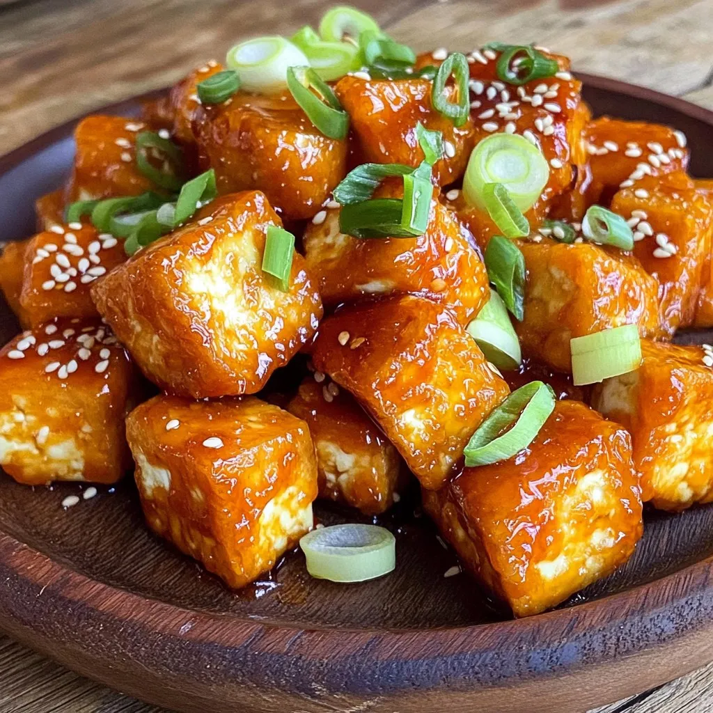 You can serve this tofu with steamed jasmine rice or a fresh salad. Both pair well with the sweet and spicy flavors. You can also add some stir-fried vegetables for a nutritious meal. Garnishing with green onions and sesame seeds adds a nice touch.
