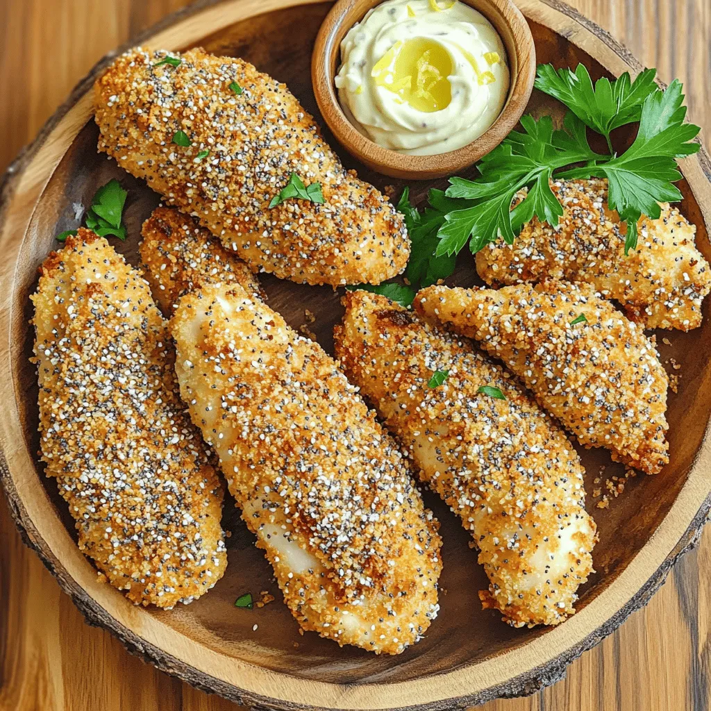 You can add more flavor to your chicken tenders. Try mixing in garlic powder or paprika with the flour. This adds a nice kick. You can also use different bagel seasonings. Everything bagel seasoning is great, but you could try onion or garlic blends. For serving, pair the tenders with a dip. A zesty lemon aioli or ranch dressing works well. Fresh herbs like parsley or chives make a great garnish too.