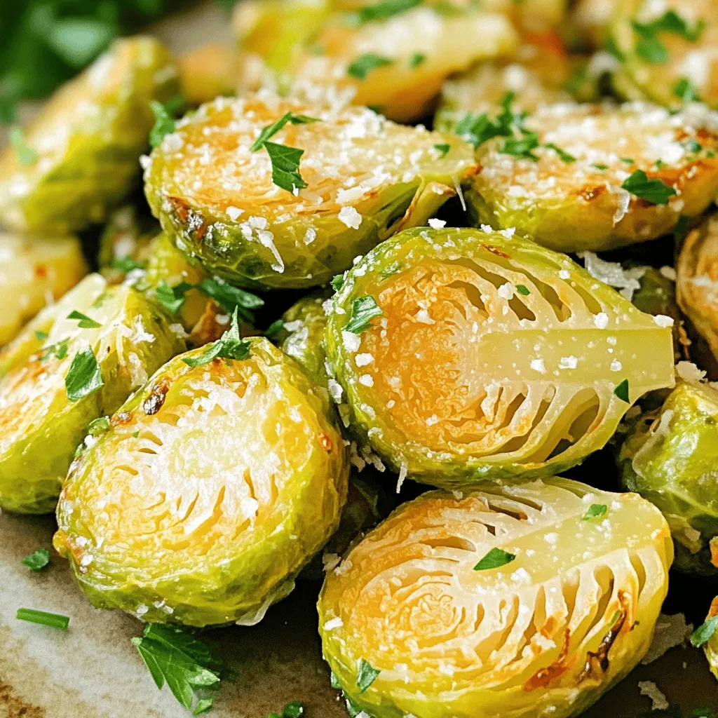 To make Air Fryer Garlic Parmesan Brussels Sprouts, you need a few simple items. These ingredients bring out the best flavors. Here’s what you will need: - 1 lb Brussels sprouts, trimmed and halved - 3 tablespoons olive oil - 4 cloves garlic, minced - 1/2 cup grated Parmesan cheese - 1 teaspoon dried Italian herbs (a blend of oregano, thyme, and basil) - Salt and freshly cracked black pepper to taste - Fresh parsley, finely chopped for garnish (optional) Gather these ingredients before you start cooking. They are essential for creating that crispy, flavorful dish. Each item plays a role in making the Brussels sprouts tasty and enjoyable. The olive oil helps them crisp up nicely, while the garlic adds a punch of flavor. Parmesan cheese gives a rich, salty taste that complements the sprouts perfectly. Feel free to mix in fresh herbs or spices if you want to customize the dish! Each ingredient can help you explore new flavors. Cooking is all about creativity, so have fun with it! Start by preheating your air fryer to 375°F (190°C). This takes about 5 minutes. Preheating helps the Brussels sprouts cook evenly. You want them to be crispy and golden. Take 1 pound of Brussels sprouts. Trim the ends and cut them in half. Place them in a large mixing bowl. Add 3 tablespoons of olive oil. Toss the sprouts gently until they are coated in oil. This step is key for a nice crunch. Next, add 4 cloves of minced garlic to the bowl. Then sprinkle in 1 teaspoon of dried Italian herbs. Add salt and freshly cracked black pepper to taste. Stir well to mix the garlic and herbs with the sprouts. Now, sprinkle 1/2 cup of grated Parmesan cheese over the mixture. Fold gently to coat the sprouts with cheese. This will create a tasty crust when cooked. Carefully arrange the Brussels sprouts in the air fryer basket. Make sure they are in a single layer. This allows hot air to circulate around them. If your air fryer is small, you may need to cook them in two batches. Air fry the Brussels sprouts for 15 to 18 minutes. Shake the basket halfway through cooking. This ensures even cooking and crispiness. You want them to turn a beautiful golden-brown color. Once done, remove the Brussels sprouts from the air fryer. Transfer them to a serving bowl. If you like, sprinkle some fresh chopped parsley on top for color and flavor. You can also drizzle a bit of olive oil and add more Parmesan for extra richness. Enjoy these delightful bites! To get crispy Brussels sprouts, you must not overcrowd the air fryer. Place the sprouts in a single layer. This allows hot air to circulate around each piece. If you have a lot, cook them in batches. Shaking the basket halfway through helps too. This ensures even cooking. Use high-quality olive oil for the best flavor. Extra virgin olive oil works great. It adds a rich taste and helps the sprouts crisp up. Avoid using flavored oils as they may clash with garlic and cheese. If you need a cheese swap, try Pecorino Romano. It has a similar texture and flavor but is saltier. Nutritional yeast is a good vegan option. It gives a cheesy flavor without the dairy. You can prep the Brussels sprouts in advance. Just toss them in olive oil and seasonings, then store in the fridge. Cook them fresh when you’re ready to eat. They stay tasty for up to one day. {{image_4}} You can switch up the cheese for more flavor. Try using pecorino or feta. Both add a nice twist. They bring a different saltiness that pairs well with the sprouts. If you want a creamier texture, consider using mozzarella. It melts beautifully and gives a gooey finish. A mix of cheeses can also work wonders. Brussels sprouts are great, but you can add more veggies for extra taste. Carrots or bell peppers work well. They roast nicely in the air fryer. Simply chop them into bite-sized pieces. Toss them in with the Brussels sprouts. This mix will give you a colorful dish that is fun to eat. If you like heat, add red pepper flakes to the mix. Just a pinch can lift the flavor. This extra kick makes the dish exciting. Adjust the amount based on your spice level. You can also add a splash of hot sauce before serving. This will give your Brussels sprouts a spicy twist that your guests will love. To keep your Air Fryer Garlic Parmesan Brussels sprouts fresh, let them cool first. Once cool, place them in an airtight container. You can store them in the fridge for up to 3 days. Make sure to separate any extra Parmesan cheese for best results. When you reheat the Brussels sprouts, aim for the best texture. I recommend using the air fryer again. Preheat it to 375°F (190°C) and air fry the sprouts for about 5-7 minutes. This method helps restore their crispiness. You can also use a skillet on medium heat. This way, you can get them warm while adding a bit of olive oil if needed. If you want to freeze the Brussels sprouts, it’s best to do this before cooking. First, blanch them in boiling water for 2-3 minutes. Then, quickly place them in ice water. Once cooled, spread them on a baking sheet and freeze. After they are frozen, store them in a freezer-safe bag. They can last up to 3 months. When ready to eat, air fry directly from frozen for a quick, tasty meal! Yes, you can use frozen Brussels sprouts. However, they may not get as crispy. Thaw them first and pat them dry. This helps remove excess moisture. To avoid burning, shake the basket halfway through cooking. This lets the sprouts cook evenly. Also, keep an eye on them during the last few minutes. These sprouts pair well with many dishes. Try them with grilled chicken, steak, or fish. They also work great as a side for pasta or risotto. Yes, this recipe is perfect for vegetarians. It uses only plant-based ingredients, plus cheese. Enjoy it as a side or a main dish. You can boost flavor by adding lemon juice or zest. A splash of balsamic vinegar adds depth. For a spicy kick, toss in some red pepper flakes. In this blog post, we explored how to make Garlic Parmesan Brussels Sprouts using simp