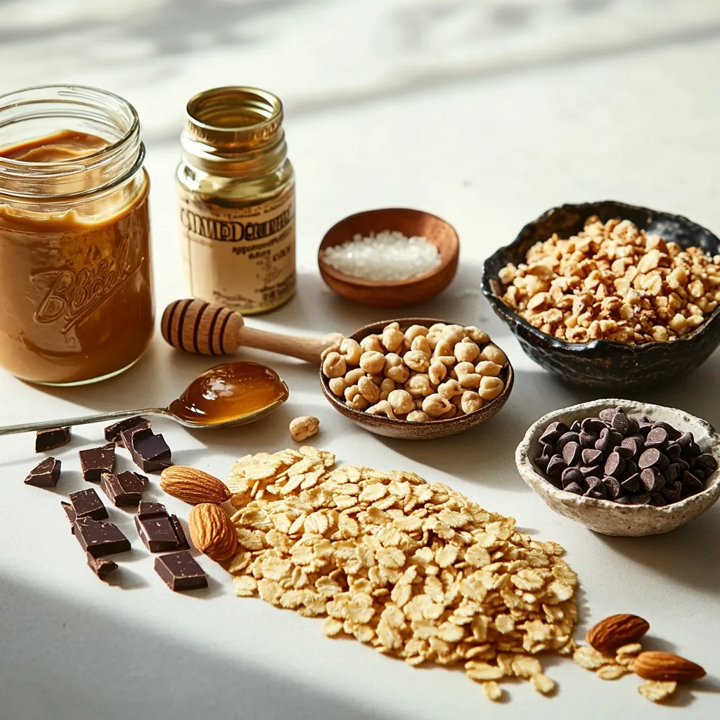 These ingredients are easy to find. They blend together to create a treat that is both crunchy and sweet. The crispy rice cereal adds a nice crunch, while the peanut butter provides a creamy base. Honey or maple syrup gives a touch of sweetness, and dark chocolate adds richness. Nuts bring extra texture and flavor.