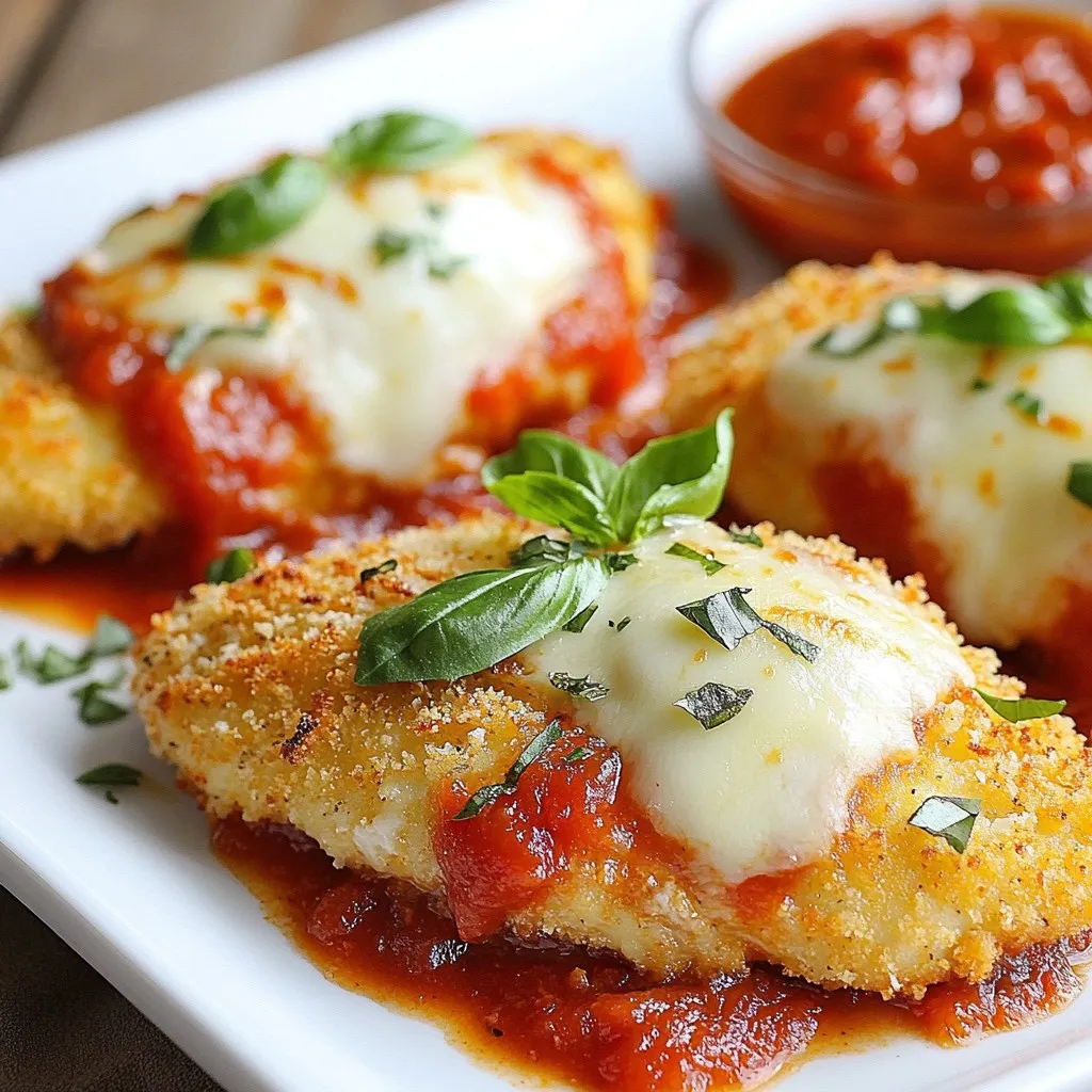 Baked Chicken Parmesan is simple yet delicious. The chicken breasts serve as the star of the dish. They are juicy and tender. The breading adds a crispy layer, giving each bite a crunch. I recommend using panko breadcrumbs. They create a lighter and crispier coating.