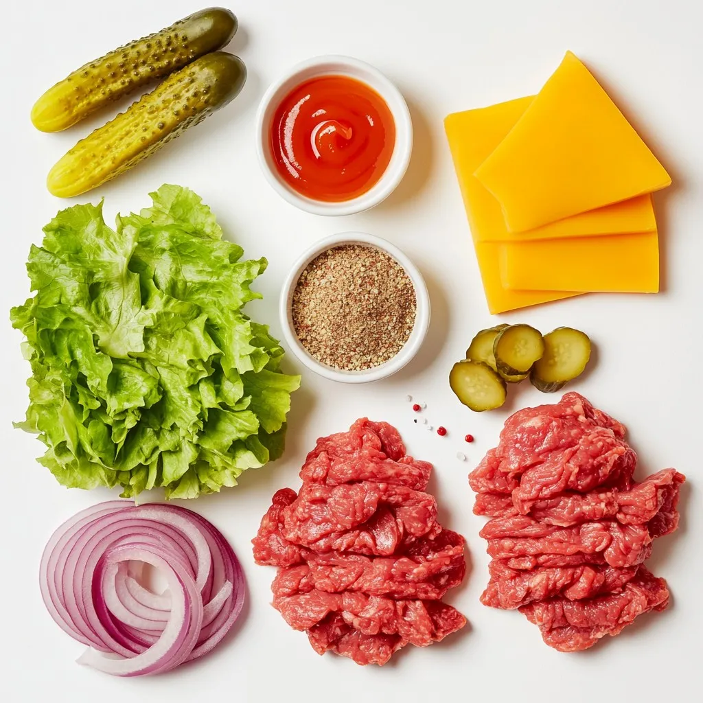 Main Ingredients for Bunless Cheeseburger Lettuce Wraps
