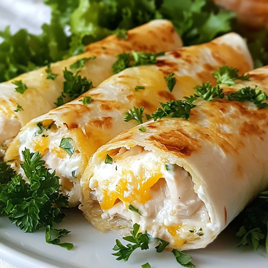 You can make these wraps ahead of time. Start by preparing the filling. Mix the chicken, cheeses, garlic, parsley, and spices in a bowl. Next, fill the tortillas. Roll them tightly. Wrap each one in plastic wrap. Place them in the fridge for up to two days. For longer storage, freeze them. Just make sure to wrap them well. When you’re ready, thaw and cook them as directed.