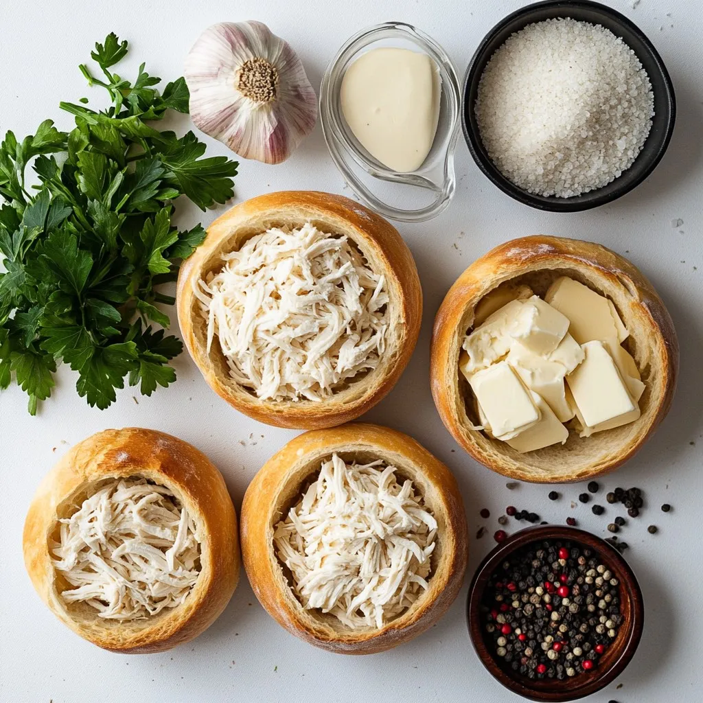 To make Chicken Alfredo Bread Bowls, gather these simple ingredients: