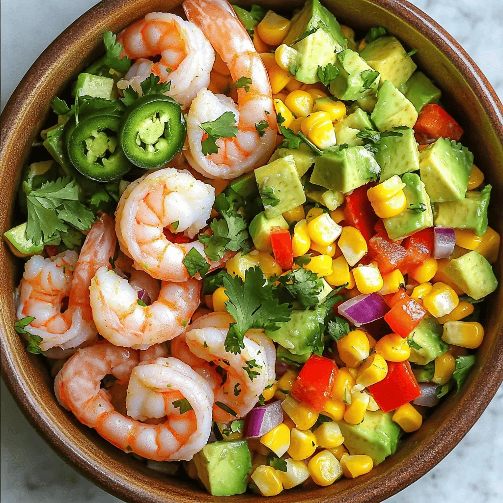 Gathering these ingredients is your first step to a delicious salad. The shrimp gives a great protein boost. The spices and lime juice add a punch of flavor. Avocados make the salad creamy, while corn adds sweetness. Fresh veggies bring a crisp texture. Don’t skip the cilantro, as it brightens every bite. If you like heat, add jalapeño for a spicy kick.