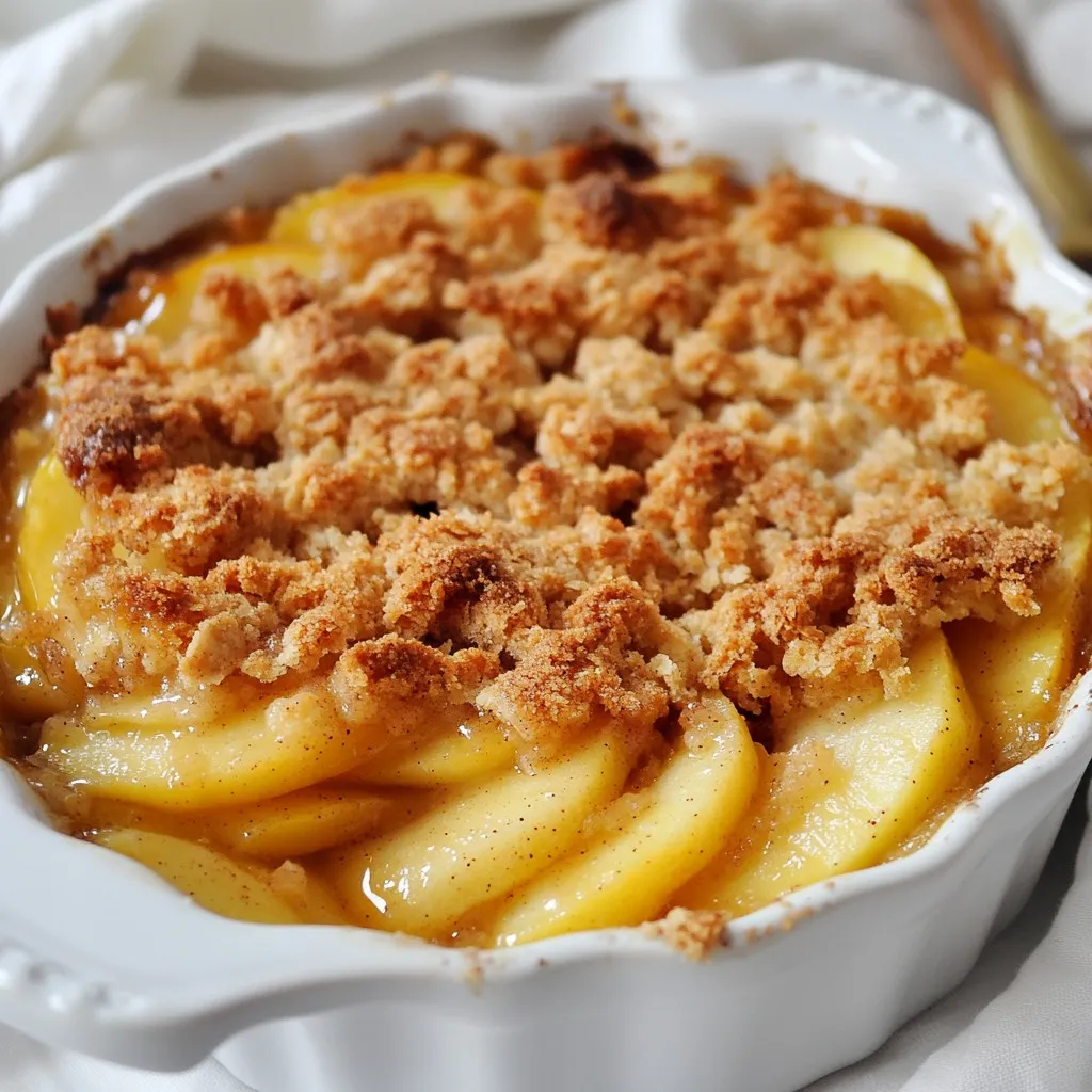 A delightful dessert featuring tart apples topped with a crunchy crumble, perfect for any occasion.