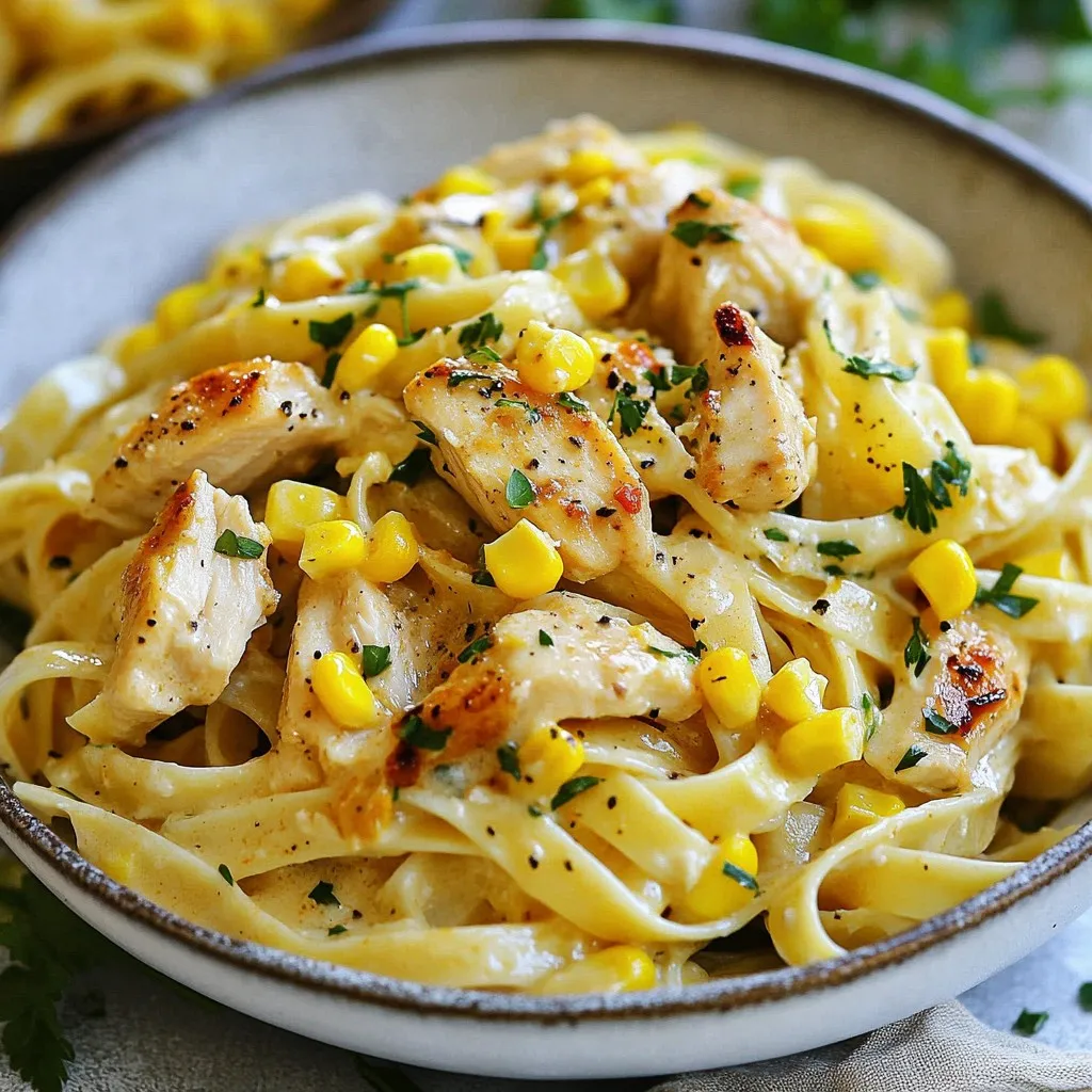 Toss in the sweet corn and the cooked fettuccine, along with a bit of the reserved pasta water as necessary. Stir everything together, ensuring the pasta is well-coated with the decadent sauce. Adjust the consistency to your liking.