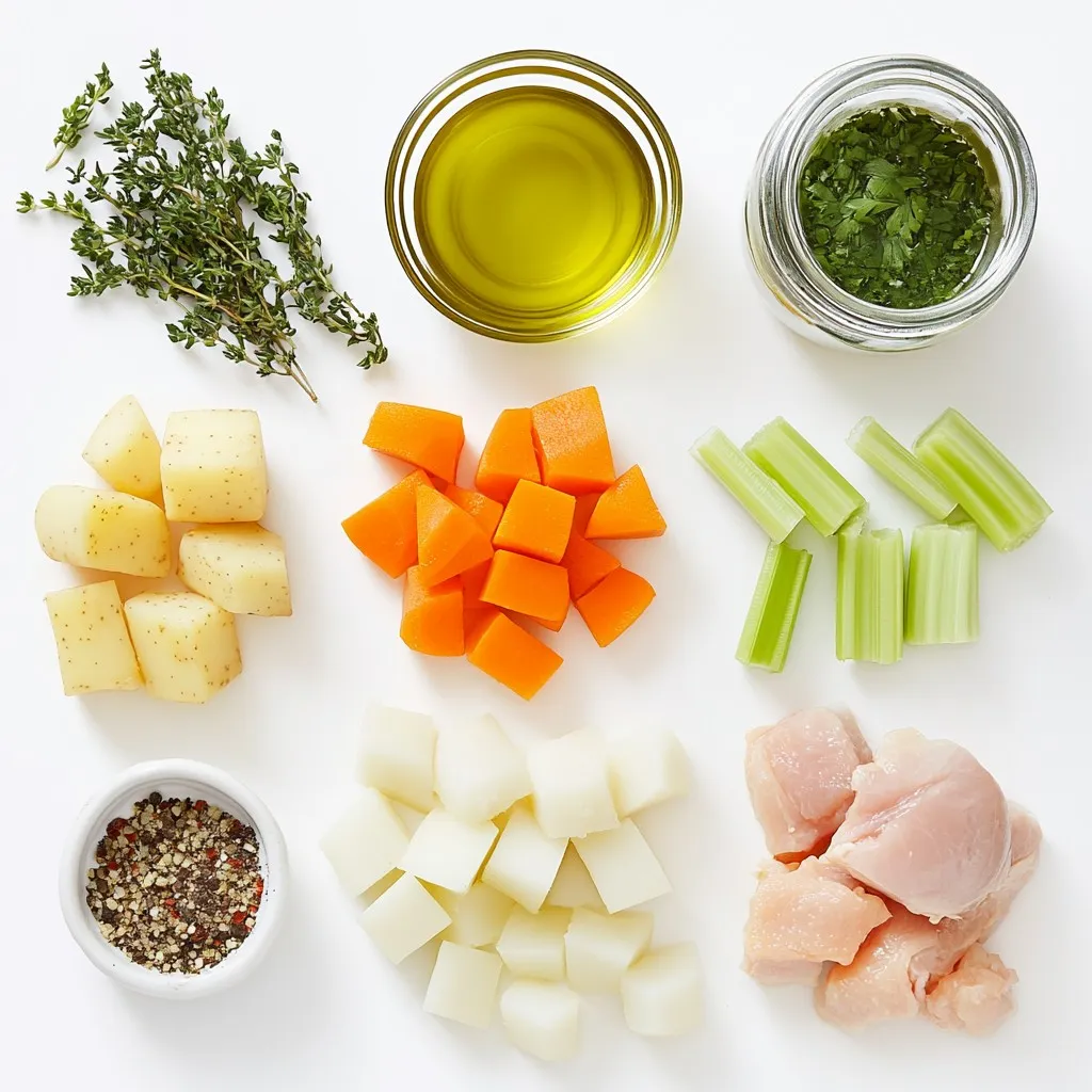When making Cozy Chicken Potato Soup, you need some key ingredients. First, olive oil helps to sauté the vegetables. You will also need a finely diced medium onion and minced garlic for flavor. Two peeled and diced carrots and two diced celery stalks add sweet crunch.