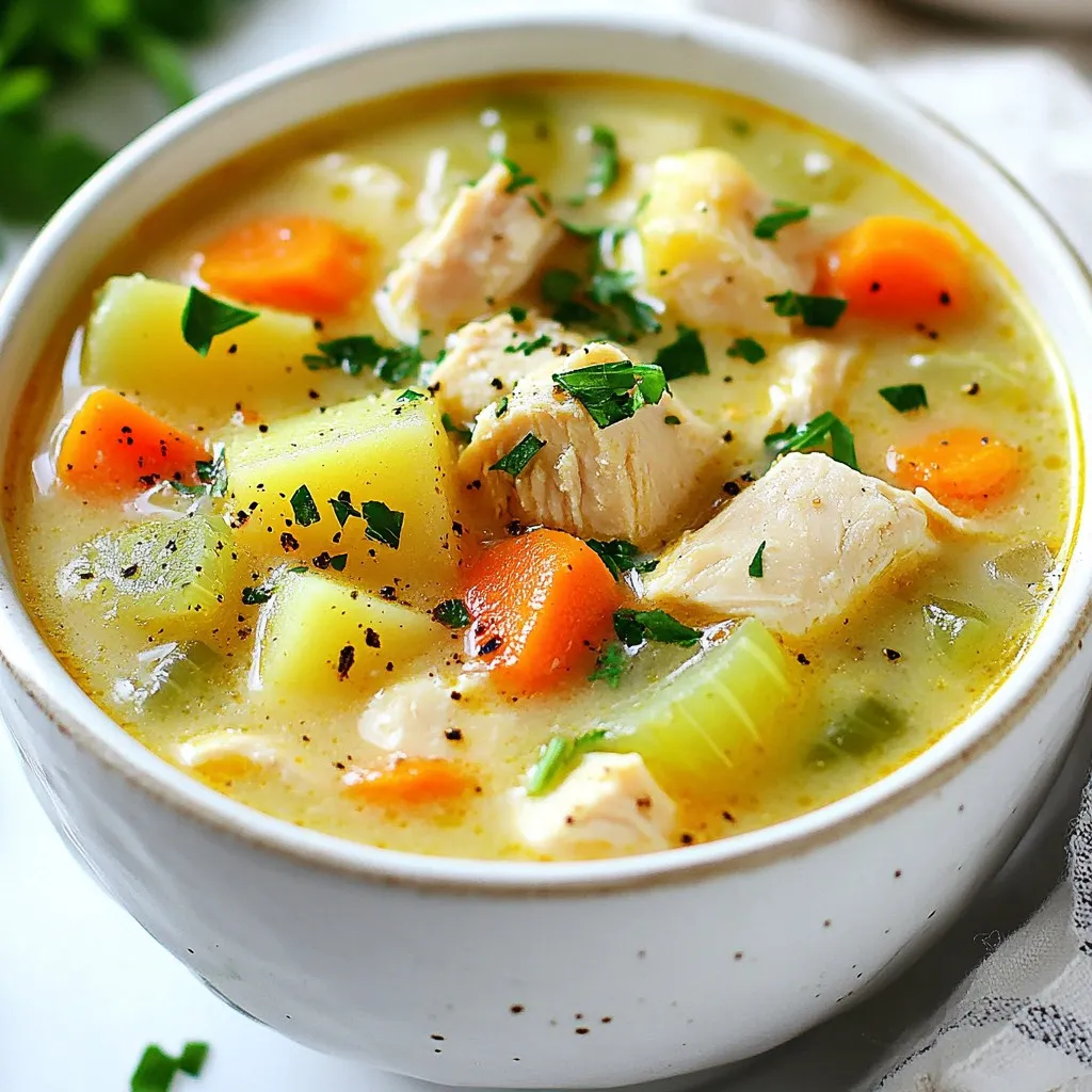 A warm and comforting soup made with chicken, potatoes, and vegetables, perfect for chilly days.