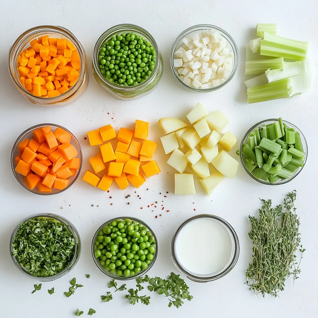 To make your Cozy Veggie Pot Pie Soup shine, focus on the base. Start with a good olive oil. Heat it until it shimmers. Sauté the onion until soft. This step builds a rich flavor. Next, add garlic for a fragrant touch. Don’t rush it; let the garlic cook for just a minute. The herbs are key here. Use dried thyme and rosemary. These give the soup a warm, earthy taste. Smoked paprika adds a nice depth, too. Stir in the coconut milk last for creaminess and richness. It will tie all the flavors together.