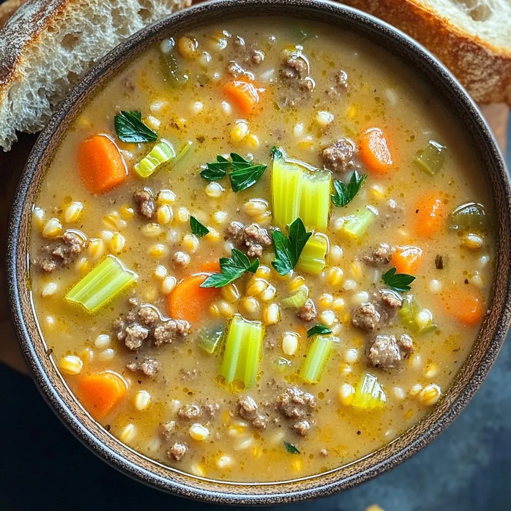 The main ingredients set the stage for a rich and hearty soup. Ground beef gives the soup a nice flavor. Pearl barley adds chewiness and helps thicken the soup. Fresh vegetables like onions, carrots, and celery bring out a sweet flavor. Don’t forget the garlic; it adds depth to every bite.