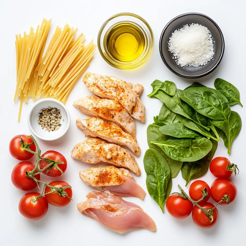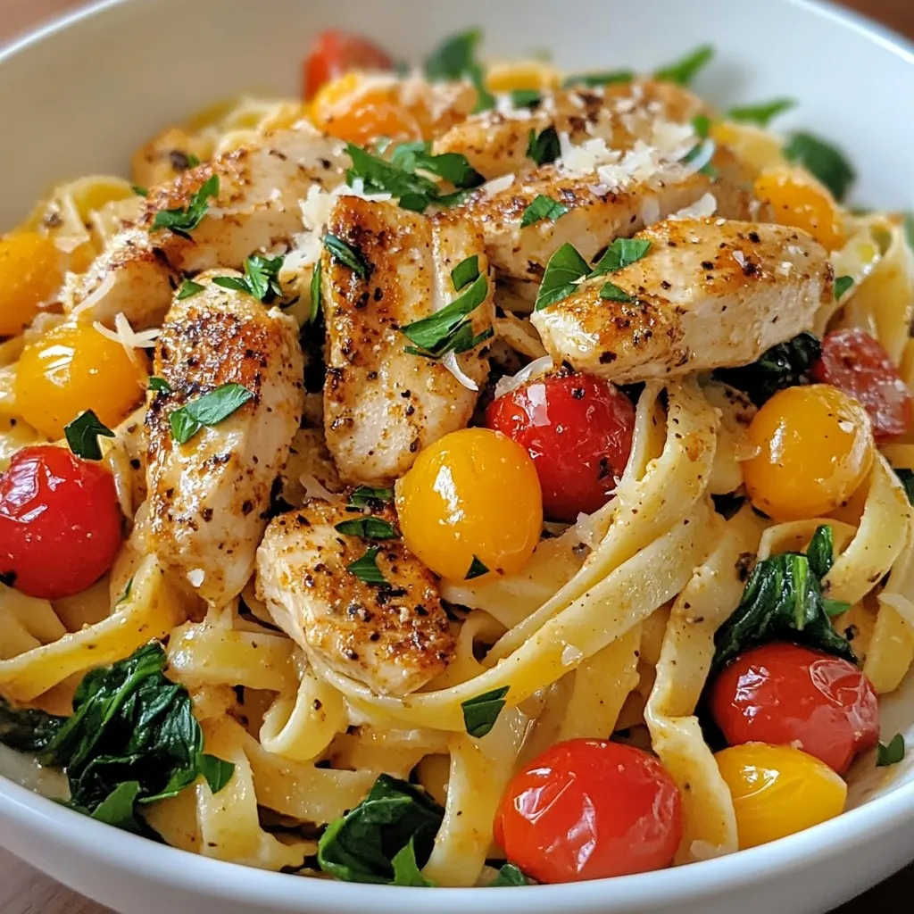 A delicious and creamy pasta dish with Cajun-spiced chicken, fresh spinach, and cherry tomatoes.