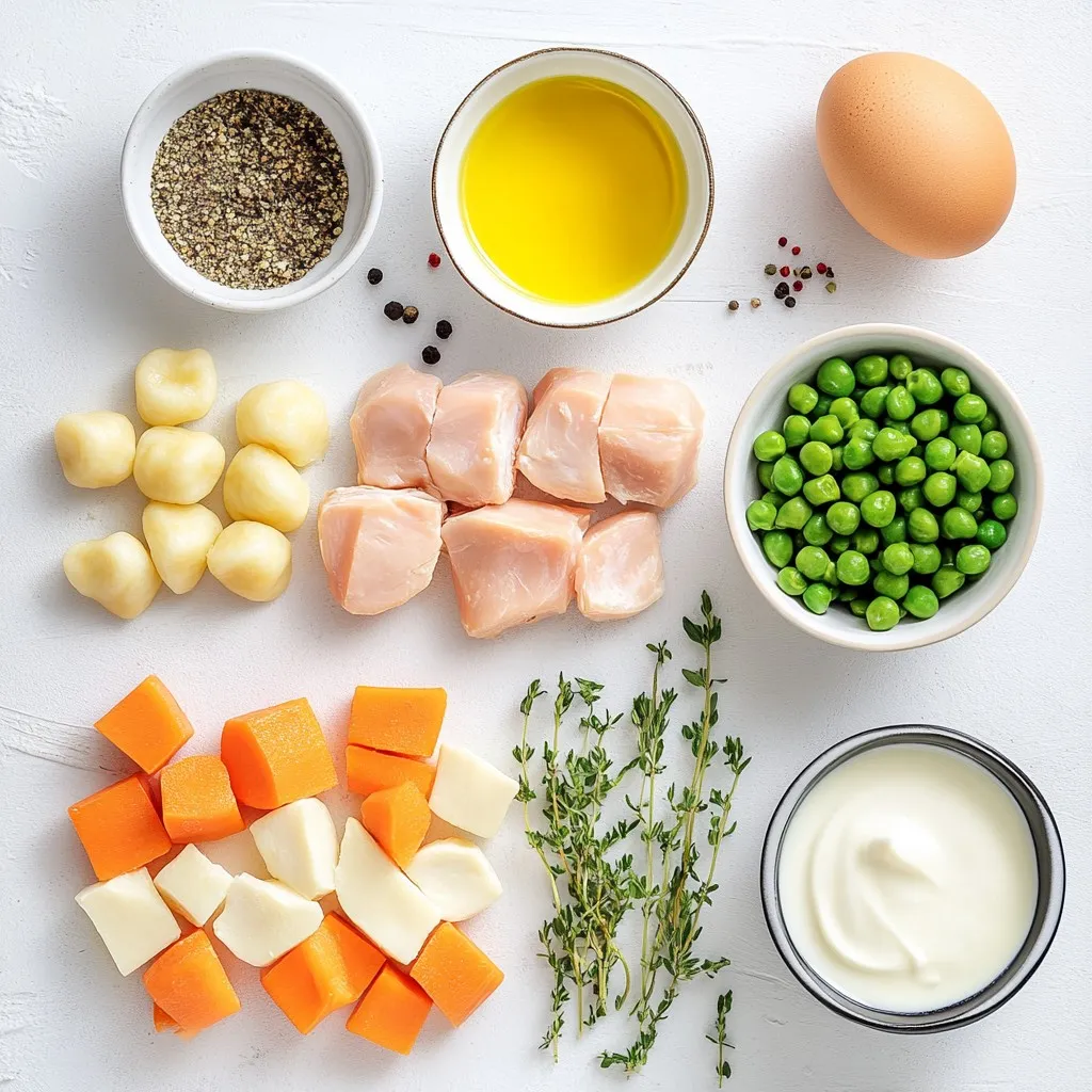 To make a delicious Creamy Chicken and Gnocchi Pot Pie, gather these key ingredients: