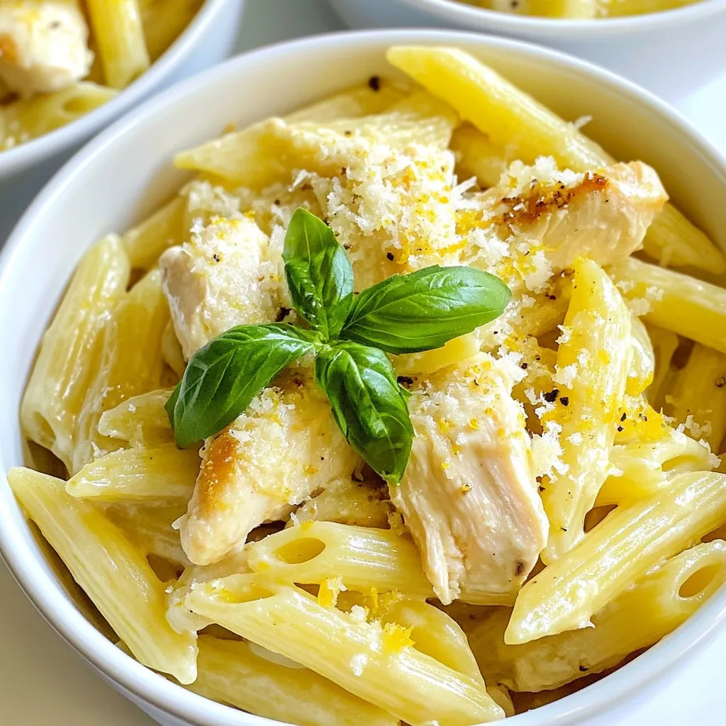 - 12 oz penne pasta - 1 lb boneless, skinless chicken breast, diced into bite-sized pieces - 1 cup heavy cream - 1 cup freshly grated Parmesan cheese - 2 tablespoons extra-virgin olive oil - 4 cloves garlic, minced - 1 medium onion, finely chopped - 1 teaspoon Italian seasoning blend - Sea salt and freshly cracked black pepper, to taste - Fresh basil leaves, for garnish - Extra Parmesan cheese for serving Gather these ingredients first. The penne pasta serves as the base and holds the creamy sauce well. Chicken breast gives protein and heartiness. Heavy cream adds richness while Parmesan cheese brings a savory depth. Next, olive oil, garlic, and onion build the flavor foundation. Italian seasoning gives a touch of classic Italian taste. Do not forget the sea salt and black pepper to taste. Lastly, fresh basil leaves offer a fragrant touch. Extra Parmesan cheese can enhance the dish's look and flavor. Each ingredient plays a key role in creating a dish that feels both comforting and gourmet. {{ingredient_image_2}} Start by boiling water in a large pot. Make sure to add a good amount of salt. This helps flavor the pasta. Once the water is boiling, add the 12 oz of penne pasta. Cook it according to the package instructions, usually around 10-12 minutes. You want the pasta to be al dente, which means it should have a slight bite to it. When done, drain the pasta in a colander and set it aside. Next, we’ll prepare the chicken. Heat 2 tablespoons of extra-virgin olive oil in a large skillet over medium-high heat. Once hot, add 1 lb of diced chicken breast. Sprinkle it with sea salt and freshly cracked black pepper. Sauté the chicken for about 5-7 minutes. You want it to turn golden brown and cook all the way through. Once finished, transfer the chicken to a plate and set it aside. Now it’s time to make the creamy sauce. In the same skillet, add 1 medium finely chopped onion and 4 cloves of minced garlic. Sauté them for 2-3 minutes until the onion is soft and clear. The garlic will smell wonderful. Next, pour in 1 cup of low-sodium chicken broth and bring it to a light simmer. Stir in 1 cup of heavy cream, 1 teaspoon of Italian seasoning, and 1 cup of freshly grated Parmesan cheese. Keep stirring until the cheese melts and the sauce is smooth and creamy. Now, let’s combine everything. Add the sautéed chicken back into the skillet along with the drained penne pasta. Toss gently to coat the pasta in the creamy sauce. Taste it and adjust seasoning if needed. You might want a bit more salt or pepper. Serve the creamy chicken penne in bowls. For a lovely touch, garnish with fresh basil leaves and a sprinkle of extra Parmesan cheese. Enjoy your meal! Achieving al dente pasta To get perfect penne, boil water with salt. Add the pasta and cook it for 10-12 minutes. Check it a minute early. You want it firm but not hard. Drain it well to avoid sogginess. Creaminess tips for the sauce For a rich sauce, use heavy cream and Parmesan cheese. Stir the cheese in slowly so it melts well. This makes the sauce smooth and creamy. If it's too thick, add a splash of chicken broth to loosen it. Additional seasonings or herbs to try You can add fresh herbs like basil or parsley. A pinch of red pepper flakes gives a nice kick. Try adding lemon zest for a fresh taste. Don't be afraid to experiment with your favorite spices. Suggested cheese variations While Parmesan is great, you can mix in mozzarella for extra stretch. Goat cheese adds a tangy twist. For a stronger flavor, consider using Pecorino Romano. Mixing cheeses gives depth to your dish. Prepping ingredients in advance Chop your garlic and onion ahead of time. Dice the chicken and store it in the fridge. This makes cooking faster and easier when you're ready to whip up the dish. Using rotisserie chicken For a quick meal, use store-bought rotisserie chicken. Just shred it and add it to the sauce. This saves time and adds great flavor. Plus, it makes this dish even easier to prepare! Pro Tips Use Fresh Ingredients: Always opt for fresh garlic and herbs to enhance the flavor of your dish. Fresh ingredients make a noticeable difference in taste. Cooking Chicken Perfectly: Ensure the chicken is not overcrowded in the skillet. This allows for even cooking and helps achieve that golden-brown color. Adjusting the Sauce Consistency: If the sauce is too thick, you can add a splash of chicken broth to reach your desired consistency. It helps maintain the flavor while adjusting texture. Make It Ahead: You can prepare the sauce ahead of time and store it in the fridge. Just reheat and add the chicken and pasta when ready to serve. {{image_4}} You can boost the nutrition of Creamy Chicken Penne by adding veggies. Think about mixing in fresh spinach or colorful bell peppers. Spinach wilts nicely in the creamy sauce. Bell peppers add a nice crunch and sweetness. You can easily make it a one-pan dish. Just throw your veggies in with the onions and garlic. Sauté until soft. Then add the chicken and continue with the sauce. This way, you cut down on dishes and keep all the flavors in one place. If you want a twist on this dish, try changing the protein. Shrimp makes a great swap for chicken. It cooks fast and adds a seafood touch. Tofu is a good choice for a veggie option. Just cube it and sauté until golden. You can also use leftover meats like rotisserie chicken. It saves time and adds extra flavor. Just toss your cooked meat into the sauce instead of fresh chicken. For those needing gluten-free options, choose gluten-free penne pasta. Many brands make it tasty and just as satisfying. If you want a lighter version, consider using lighter cream or dairy-free milk. Coconut milk works well for a unique flavor. You can also find non-dairy creamers that fit your needs. These swaps let you enjoy the dish while sticking to your diet. To keep your Creamy Chicken Penne fresh, follow these simple steps. First, let the dish cool to room temperature. This prevents condensation in