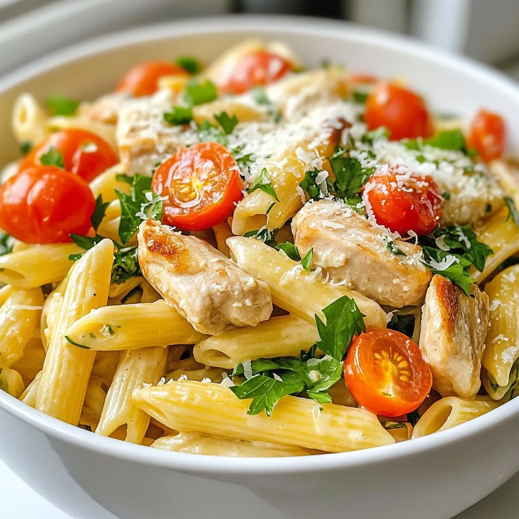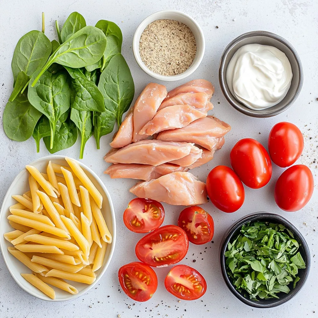 To save time, prep your ingredients first. Dice the chicken and halve the tomatoes before you start cooking. Use a large pot to boil the pasta. While it cooks, you can sauté the chicken. This cuts down on waiting time. If you have leftover chicken, use it instead of cooking from scratch. You can also use pre-chopped spinach or cherry tomatoes. This makes the process even faster!