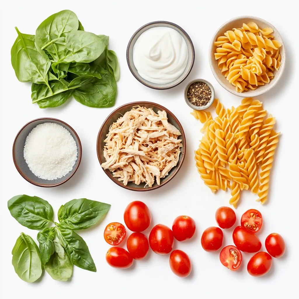The main ingredients make this dish hearty and nutritious. Whole grain pasta provides fiber and energy. Chicken adds protein while chickpeas give a vegetarian option. Spinach and cherry tomatoes bring freshness and color.