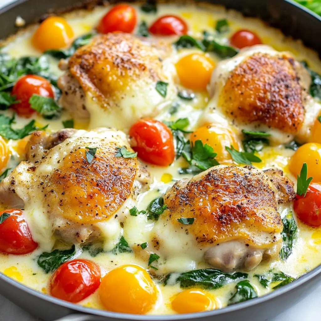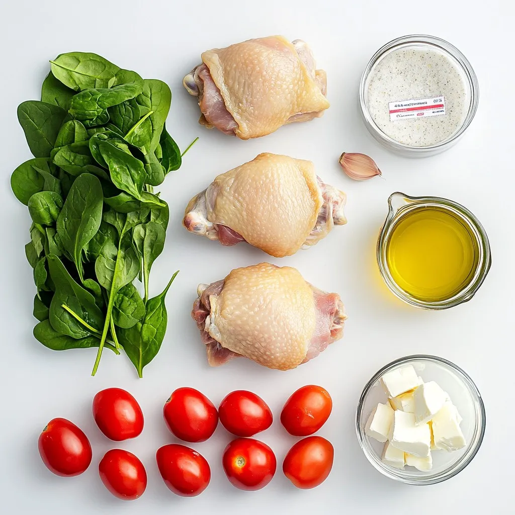 The main part of this dish is the chicken. I love using boneless, skinless thighs. They stay juicy and cook well. The creamy sauce comes from cream cheese and ranch seasoning. This mix gives a rich flavor that I find hard to resist. I also add fresh spinach and cherry tomatoes. They bring color and nutrition to the meal.