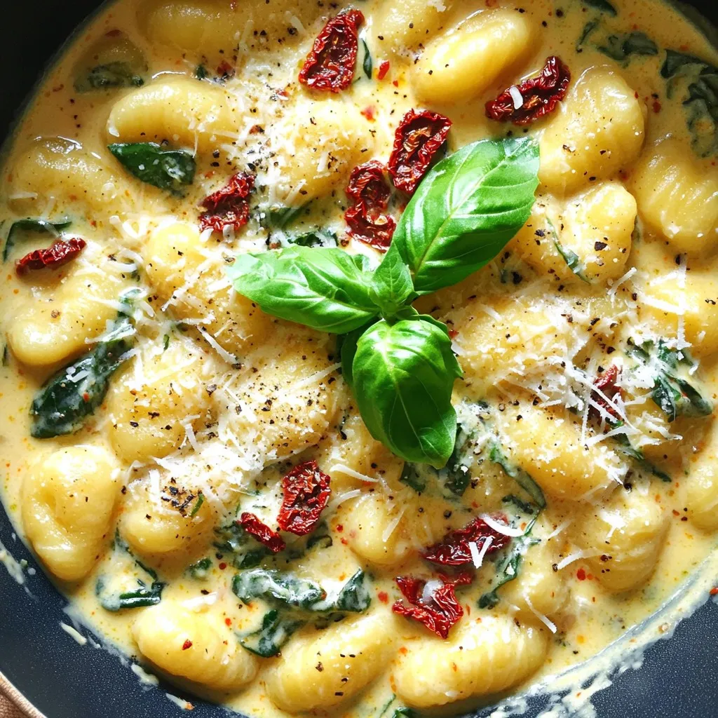 When serving creamy sun-dried tomato gnocchi, I love to add bright colors and fresh flavors. Here are my favorite ways to garnish: