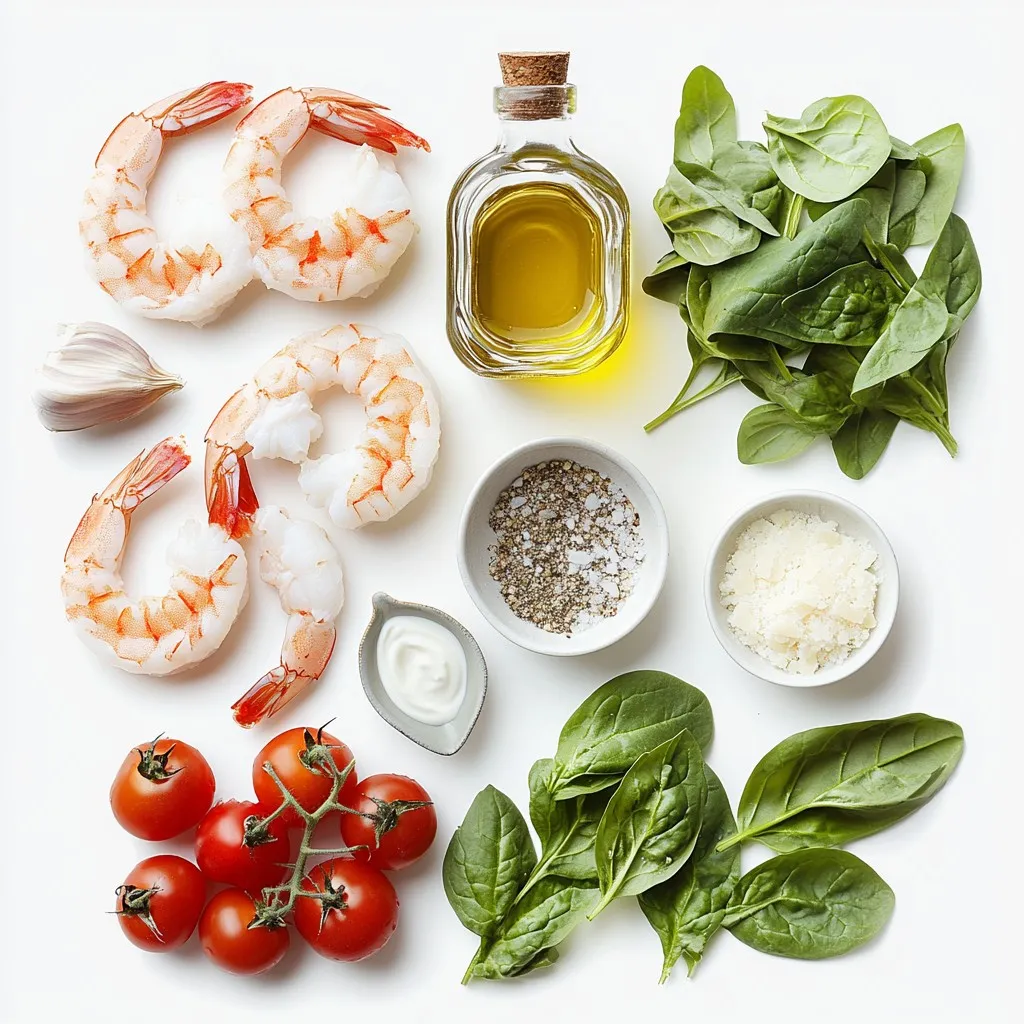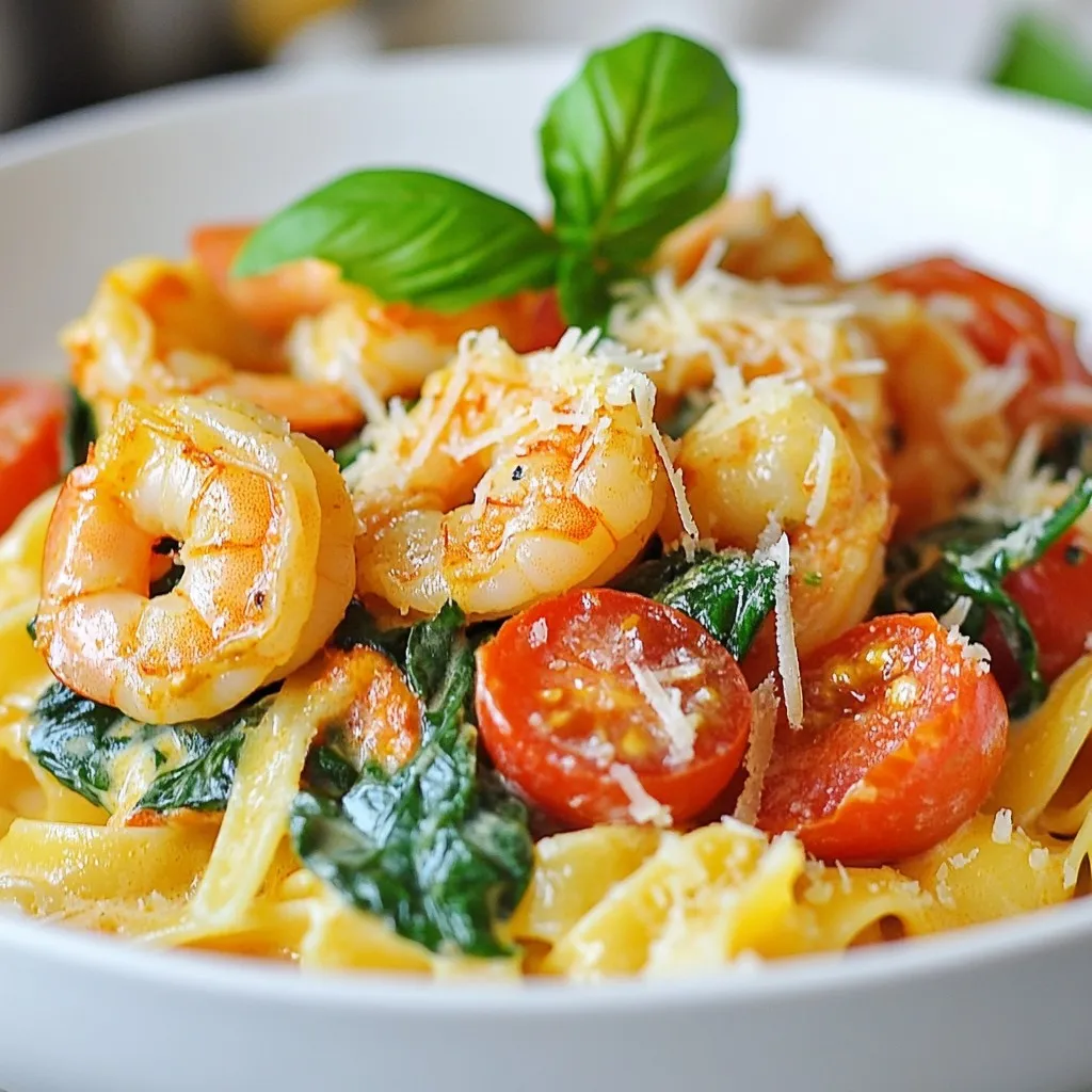 A rich and creamy shrimp dish with tomatoes and spinach, perfect for pasta or bread.
