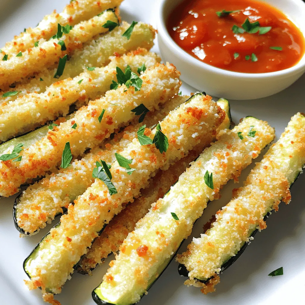 - Presentation Tips: Serve the crispy zucchini fries alongside a small bowl of marinara sauce or creamy garlic aioli for dipping. To elevate the visual appeal, garnish with freshly chopped parsley or an additional sprinkle of Parmesan cheese. Enjoy your deliciously crispy creation!