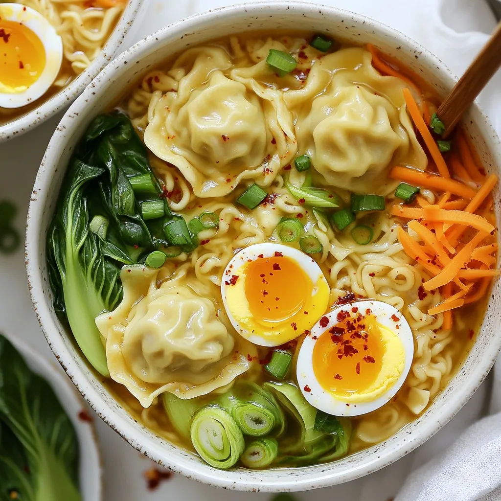 You can easily make this dish vegetarian or vegan. Swap the chicken broth for vegetable broth. Use vegetable dumplings instead of chicken ones. For a vegan option, skip the soft-boiled egg. You can add tofu for protein and texture. This keeps the bowl hearty and satisfying.