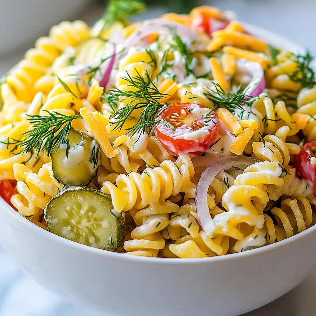Presentation is key to enjoying your Dill Pickle Pasta Salad. Serve it in a big bowl for gatherings or in small cups for individual servings. Top it with extra chopped dill for color. Shredded cheese on top adds a nice touch too. You can even serve it with a side of extra pickles for a fun touch!