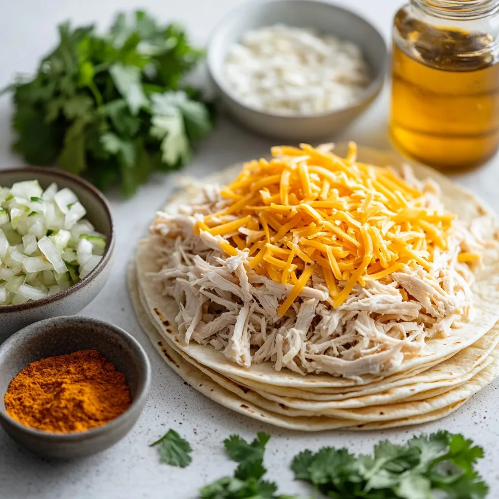 Start by gathering your ingredients. You need 2 cups of cooked chicken, shredded. Add 1 cup of your favorite shredded cheese, like cheddar. Then, toss in 1/2 cup of finely diced onion and 1/2 cup of drained canned green chilies. Sprinkle in 1 teaspoon of garlic powder, 1 teaspoon of cumin, and 1/2 teaspoon of chili powder. Finally, add salt and pepper to taste. Mix everything well in a large bowl. Use a spatula or fork to combine the ingredients evenly. This filling is packed with flavor!