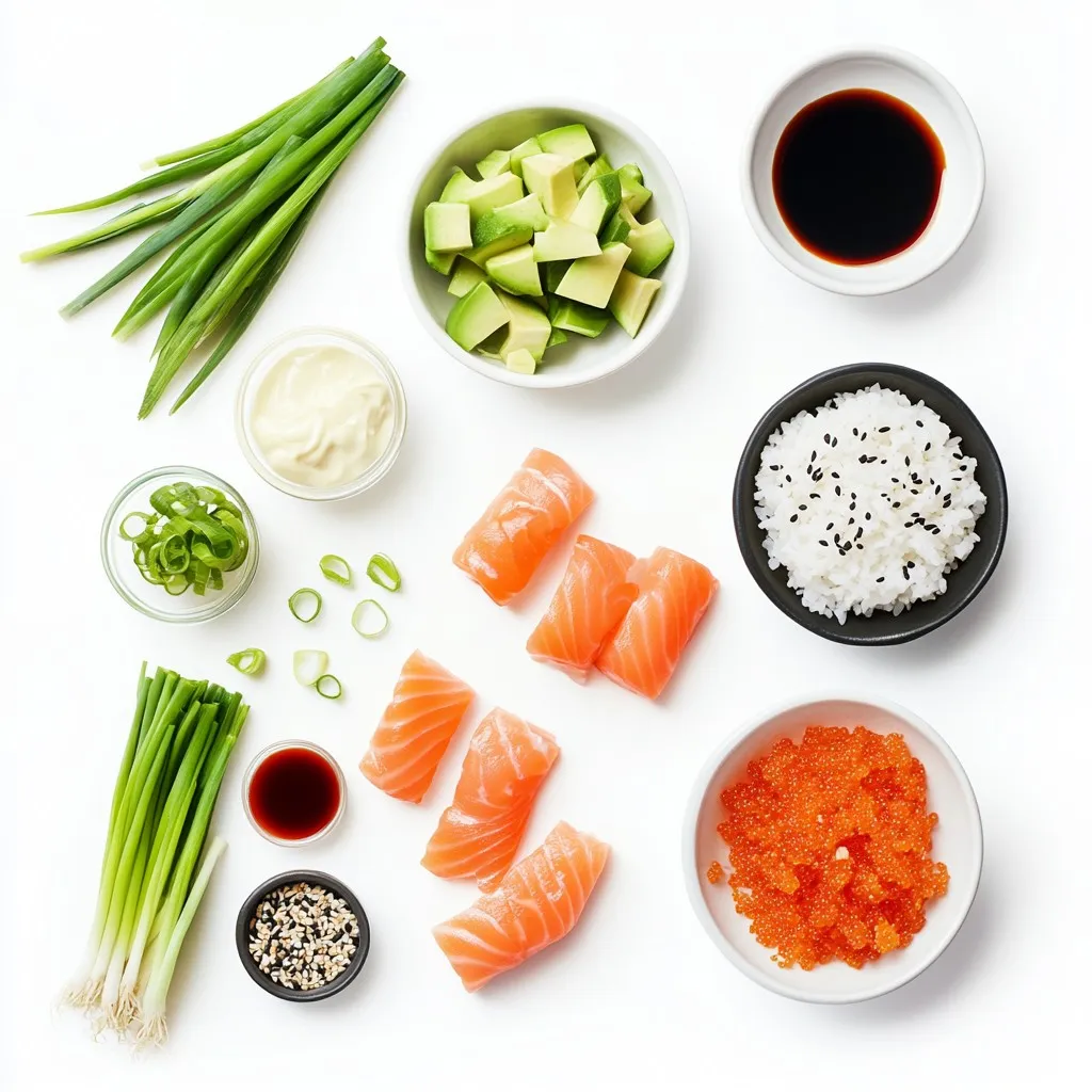 - 1 pound fresh sushi-grade salmon, diced into bite-sized pieces