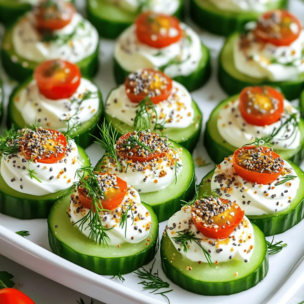 Serve your cucumber bites on a bright platter. To make them eye-catching, add a sprinkle of extra dill around the edges. You can also place whole cherry tomatoes beside the bites. This adds color and a hint of sweetness.
