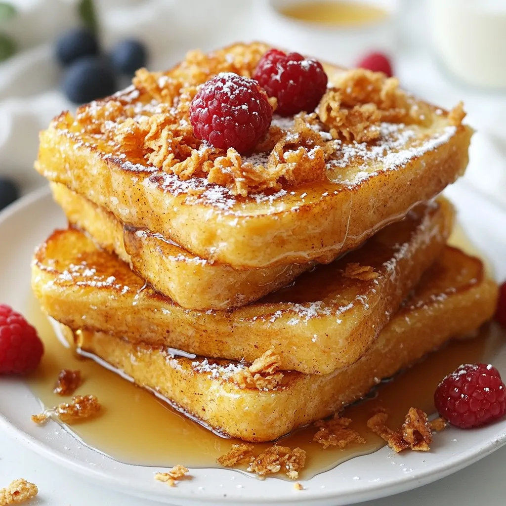 A delightful French toast recipe featuring a crunchy cornflake coating and warm spices.