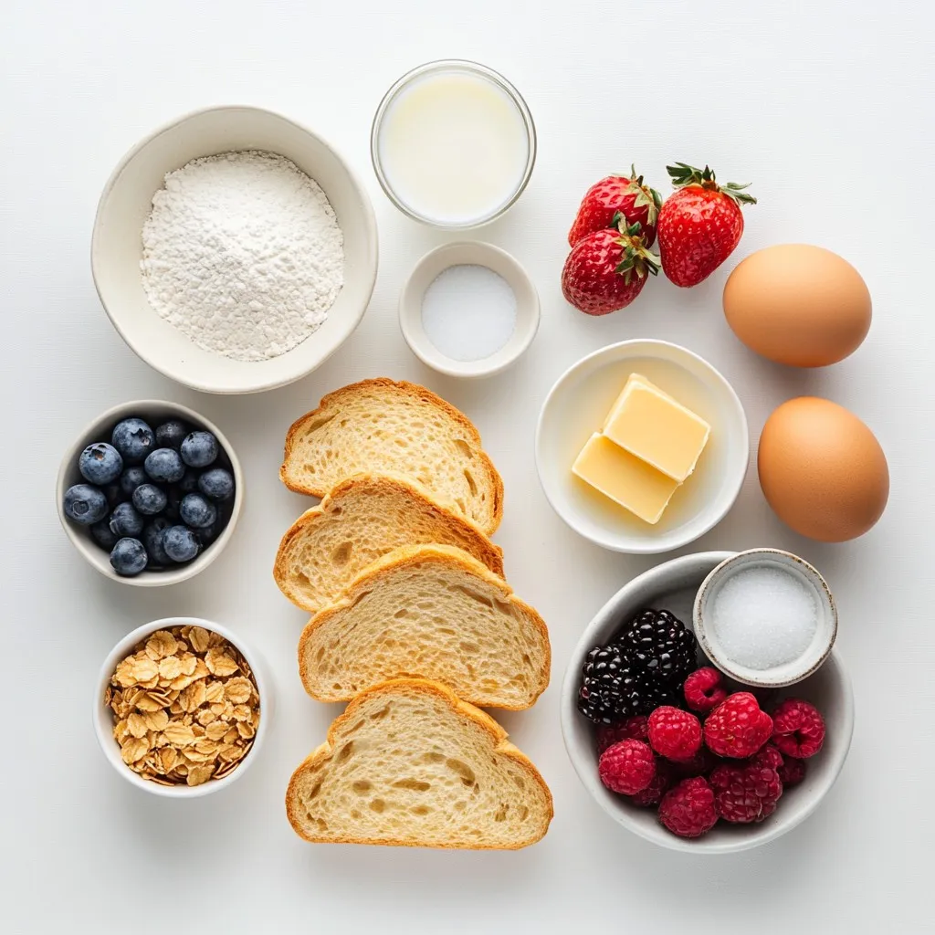 Each of these ingredients plays a key role. The brioche or challah gives the dish its fluffy texture. The eggs and milk create a rich soak that flavors each slice. Vanilla, cinnamon, and nutmeg add warmth and depth. The crushed cornflakes provide a delightful crunch. Butter adds richness while cooking, and maple syrup and berries make the dish extra special.