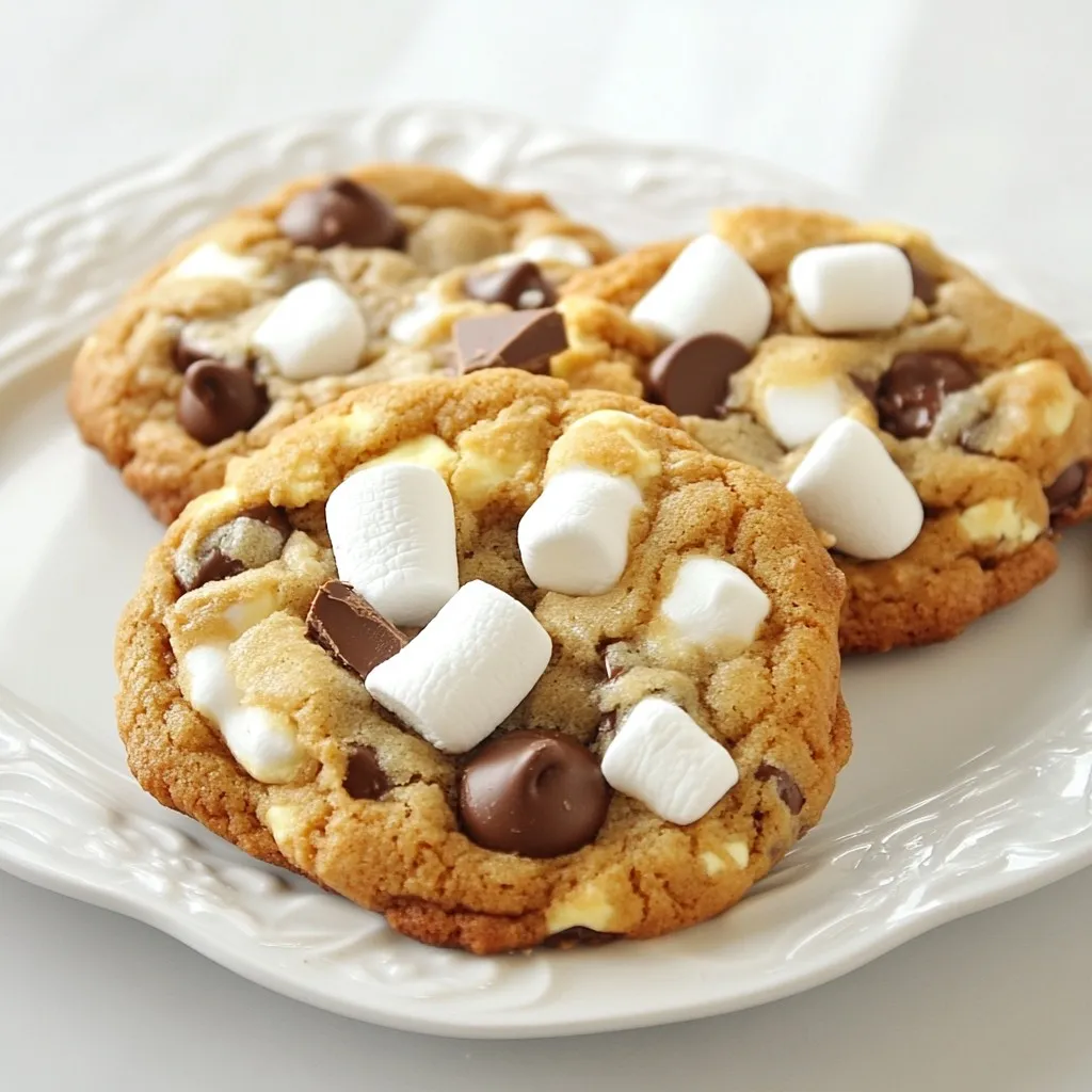 Delicious cookies filled with chocolate chips, mini marshmallows, and graham cracker crumbs, reminiscent of classic s'mores.