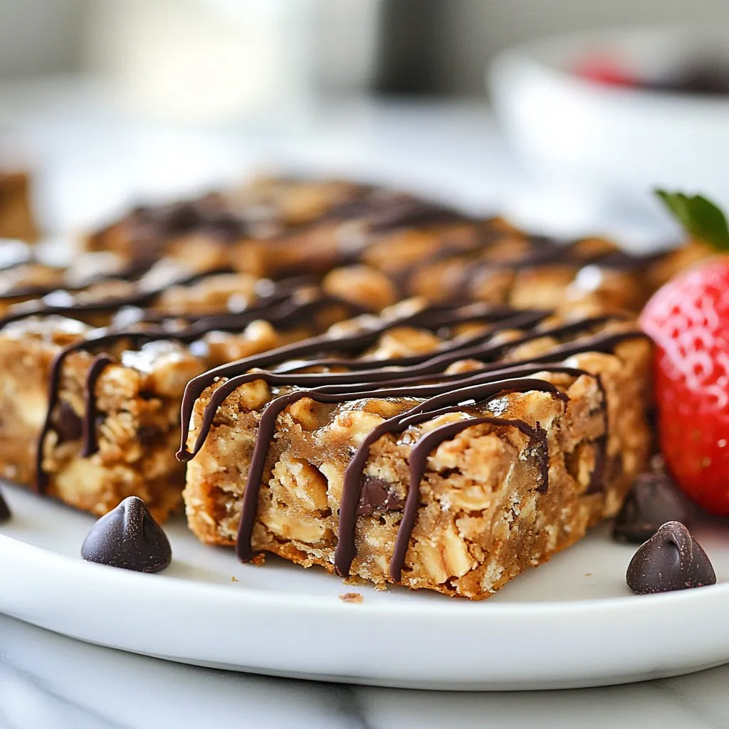When serving, you can get creative! Arrange the bars on a nice platter. Drizzle some melted dark chocolate on top for a fancy touch. Pair the bars with fresh fruits like berries or sliced bananas. This adds color and boosts nutrition. It makes your dish look even more inviting!