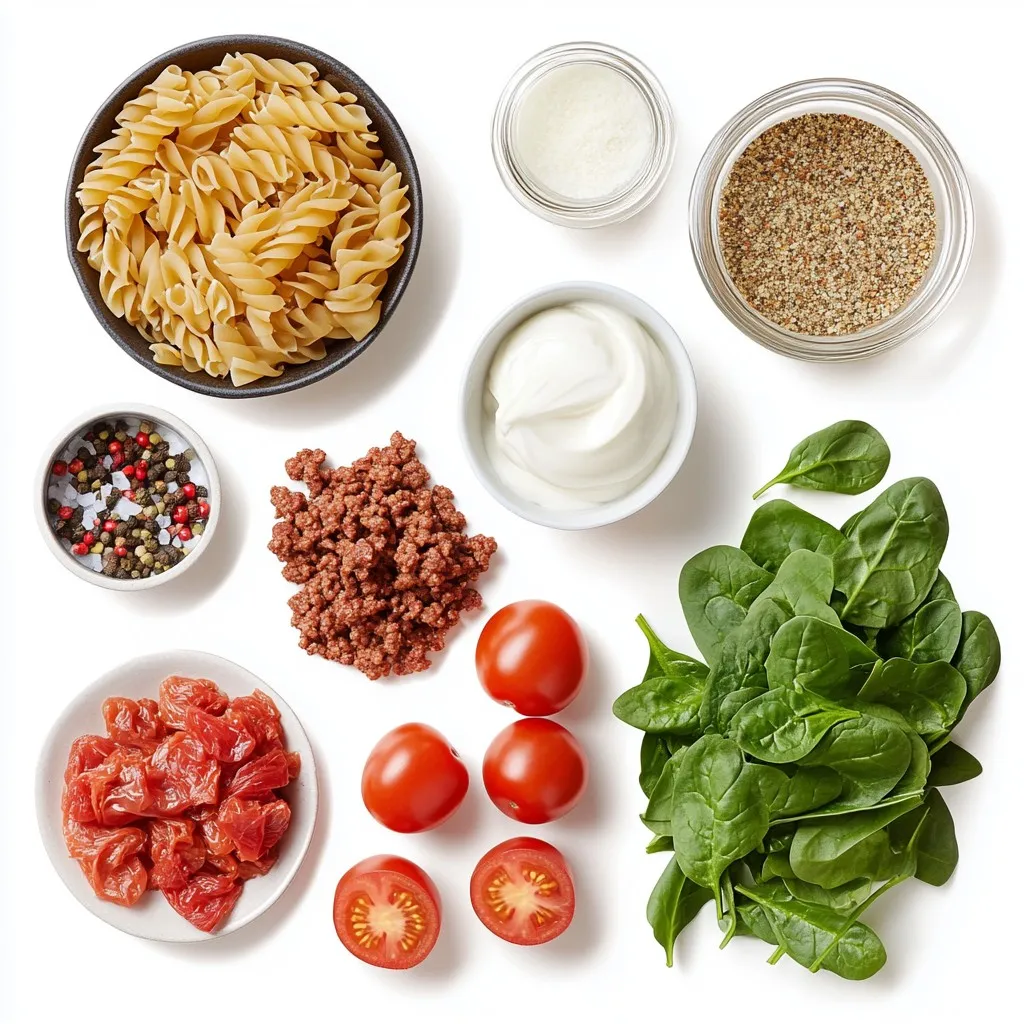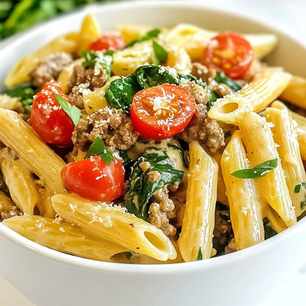 To boost flavor, sauté your onion and garlic until soft and fragrant. This step adds a lot of depth. Adding Italian seasoning and red pepper flakes gives a nice kick. When you add the beef, break it apart well. This helps it cook evenly and mix better with the sauce. Finally, folding in fresh spinach and cherry tomatoes adds color and texture. They give a fresh taste that brightens the dish.