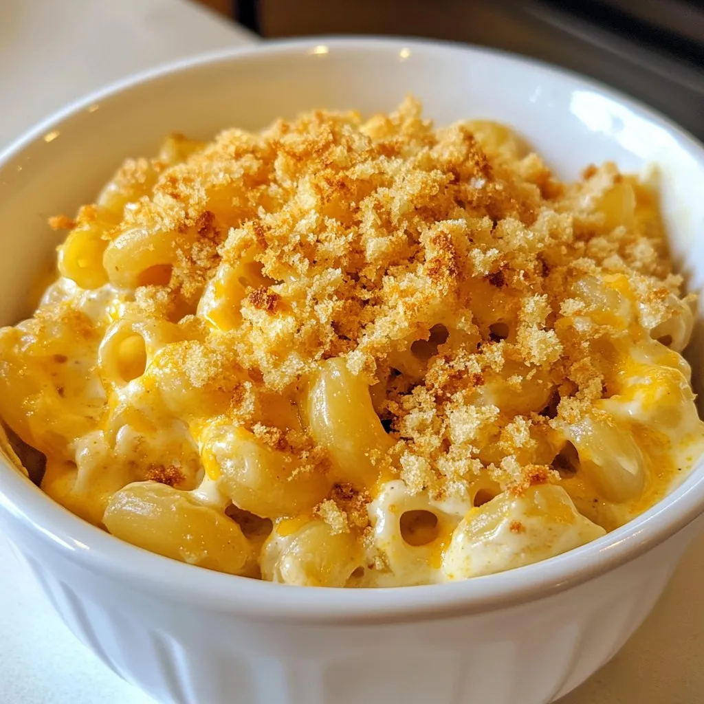 • Preheat your oven to 350°F (175°C). Grease a medium-sized baking dish with cooking spray or butter, then transfer the macaroni and cheese mixture into the dish. Evenly sprinkle breadcrumbs on top.