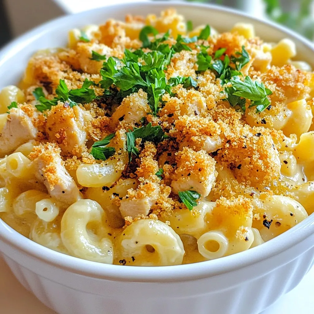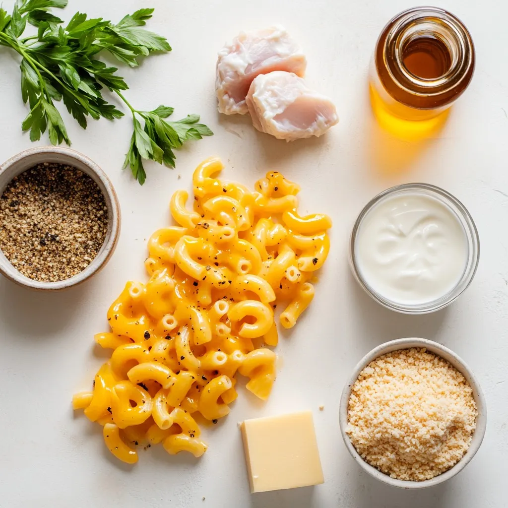 - 2 cups elbow macaroni - 1 pound chicken breast, diced into bite-sized pieces - 2 tablespoons honey - 1 teaspoon freshly ground black pepper - 1 teaspoon garlic powder - 1 teaspoon onion powder - 2 cups sharp cheddar cheese, shredded - 1 cup cream cheese, softened to room temperature - 1 cup whole milk - 1/2 cup plain breadcrumbs - 1 tablespoon olive oil - Fresh parsley, chopped (for garnish) In this recipe, the main ingredients shine through. Elbow macaroni creates a great base. Chicken breast adds protein and heartiness. Honey brings a sweet touch that pairs well with the spices. For seasonings, black pepper, garlic powder, and onion powder bring depth. They add warmth and flavor. Freshly ground black pepper gives a nice kick. Garlic and onion powders blend well into the dish. In the cheese and cream section, sharp cheddar cheese stands out. It melts beautifully and adds strong flavor. Cream cheese creates a rich, creamy texture. Whole milk helps to bring everything together smoothly. Finally, the topping ingredients finish the dish. Plain breadcrumbs add a nice crunch. Olive oil helps them brown nicely in the oven. Fresh parsley not only adds color but also fresh flavor. This combination makes the dish exciting and appealing. {{ingredient_image_2}} Start by boiling water in a large pot. Use 4-5 quarts of salted water. Bring it to a rolling boil. Once boiling, add 2 cups of elbow macaroni. Cook the pasta for about 7-9 minutes until it is al dente. After it cooks, drain the pasta in a colander. Set it aside in a large bowl to cool. In a mixing bowl, combine 1 pound of diced chicken with 2 tablespoons of honey. Add 1 teaspoon of freshly ground black pepper, 1 teaspoon of garlic powder, 1 teaspoon of onion powder, and 1 teaspoon of smoked paprika. Toss everything well. Make sure the chicken is fully coated with the marinade. Heat 1 tablespoon of olive oil in a large skillet over medium heat. Once hot, add the marinated chicken. Sauté for about 6-8 minutes. Cook until the chicken turns golden brown and is fully cooked. Stir occasionally to cook evenly. Remove the skillet from the heat and transfer the chicken to a plate to cool. In a medium saucepan, combine 1 cup of softened cream cheese and 1 cup of whole milk. Heat it over medium heat. Stir continuously until the mixture becomes smooth and creamy, about 3-4 minutes. Gradually add 2 cups of shredded sharp cheddar cheese. Keep stirring until the cheese melts. Taste the sauce and add salt if needed. In the bowl with the cooked macaroni, mix in the sautéed chicken and creamy cheese sauce. Stir gently to combine all ingredients. Ensure that each piece of pasta and chicken is evenly coated in the cheese sauce. Preheat your oven to 350°F (175°C) while you prepare the baking dish. Grease a 9x13 inch baking dish with a little olive oil or cooking spray. Carefully transfer the mac and cheese mixture into the prepared baking dish. Spread it out evenly. In a small bowl, mix 1/2 cup of plain breadcrumbs with a drizzle of olive oil. Make sure the breadcrumbs are well coated. Evenly sprinkle this mixture over the top of your mac and cheese. Place the baking dish in the preheated oven. Bake for 20-25 minutes. You want the top to be golden brown and the edges bubbling. After baking, let it cool for about 5 minutes before serving. Garnish with chopped parsley for extra color and flavor. - Choosing the right chicken part: I prefer chicken breast for this dish. It stays juicy and tender. You can also use thighs for extra flavor. Thighs have more fat, which adds moisture. - Tips for even cooking: Cut the chicken into small, even pieces. This helps them cook at the same rate. Always preheat your skillet. A hot skillet sears the chicken nicely. Don't overcrowd the pan. Cook in batches if needed. - Suggested cheese variations: Sharp cheddar is my go-to. It gives a strong flavor. You can mix in mozzarella for creaminess. Pepper jack adds a nice kick if you like spice. - Making a smooth sauce: Start with softened cream cheese and milk in a pan. Stir continuously over medium heat. This helps avoid lumps. Gradually add the cheddar, stirring until melted and creamy. - Presentation ideas: Serve directly from the baking dish for a homey feel. For a fancy touch, use individual ramekins. Top with a sprinkle of black pepper and a drizzle of honey. - Pairing suggestions with sides: This dish pairs well with a fresh green salad. Roasted vegetables add color and balance too. You could also serve it with garlic bread for a filling meal. Pro Tips Marinate for Flavor: Allow the chicken to marinate for at least 30 minutes before cooking to deepen the flavors from the honey and spices. Cheese Sauce Consistency: For a creamier sauce, ensure the cream cheese is at room temperature before mixing with milk to avoid lumps. Breadcrumb Topping: For extra crunch, consider using panko breadcrumbs instead of regular breadcrumbs for the topping. Make Ahead: This dish can be prepared in advance and stored in the refrigerator. Just bake it when you're ready to serve! {{image_4}} To spice up your Honey Pepper Chicken Mac and Cheese, add chili flakes or hot sauce. Start with a pinch of chili flakes while marinating the chicken. This will enhance the heat without overpowering the dish. If you love heat, drizzle some hot sauce into the cheese sauce. Just remember, you can always add more heat, but you can't take it out! Adding vegetables boosts the flavor and nutrition of your mac and cheese. You can mix in veggies like spinach, broccoli, or bell peppers. They add color and crunch. For best results, cook the veggies before mixing them in. If you use spinach, sauté it for a few minutes. For broccoli, steam it lightly until tender. This way, they blend perfectly with the creamy cheese sauce. Switching up the cheese can change the flavor profile. Try a blend of mozzarella and gouda for a creamy twist. You can also use pepper jack for a bit of spice. If you're looking for non-dairy options, t