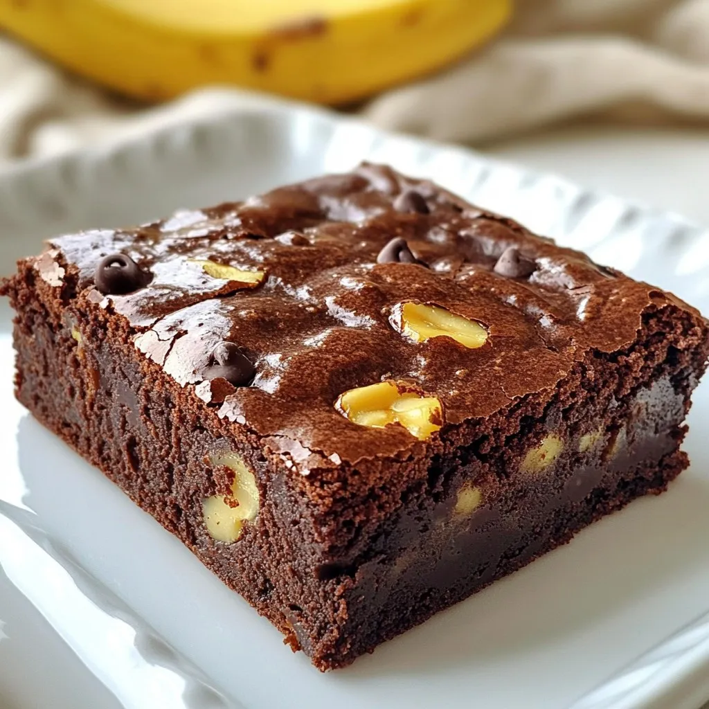 Serve your banana brownies warm for a gooey treat. Top with a dollop of whipped cream or a scoop of vanilla ice cream. You can also sprinkle extra chocolate chips on top for added indulgence. For a crunchy twist, add chopped nuts on the side. Enjoy them with a cup of coffee or tea for a cozy snack.