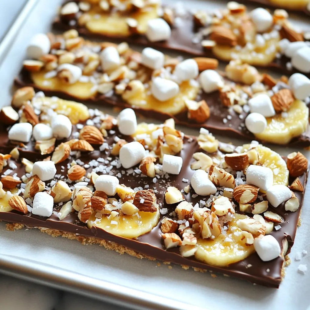 You can make this treat even better for you. Use only dark chocolate with 70% cocoa or more. It has less sugar and more nutrients. Swap bananas for sliced strawberries or apples for a fresh twist. Instead of nuts, try seeds like pumpkin or sunflower. They add crunch and are packed with good stuff. You can also use Greek yogurt instead of chocolate for a creamy layer. This keeps the bark tasty and light.