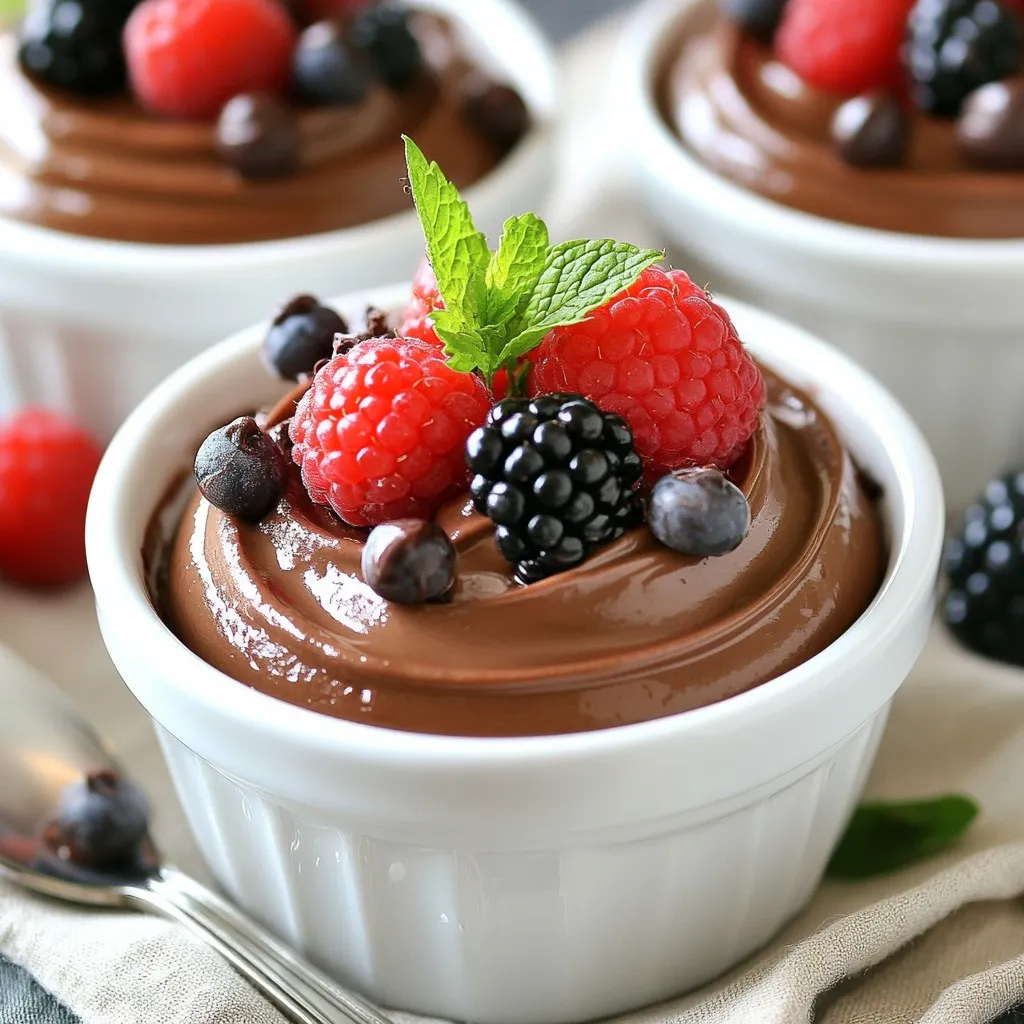 Dark chocolate chips add depth. You can choose dairy-free chips if needed. Almond milk keeps the mousse light and smooth. Finally, fresh berries and mint leaves make a lovely garnish. They add color and a burst of freshness.