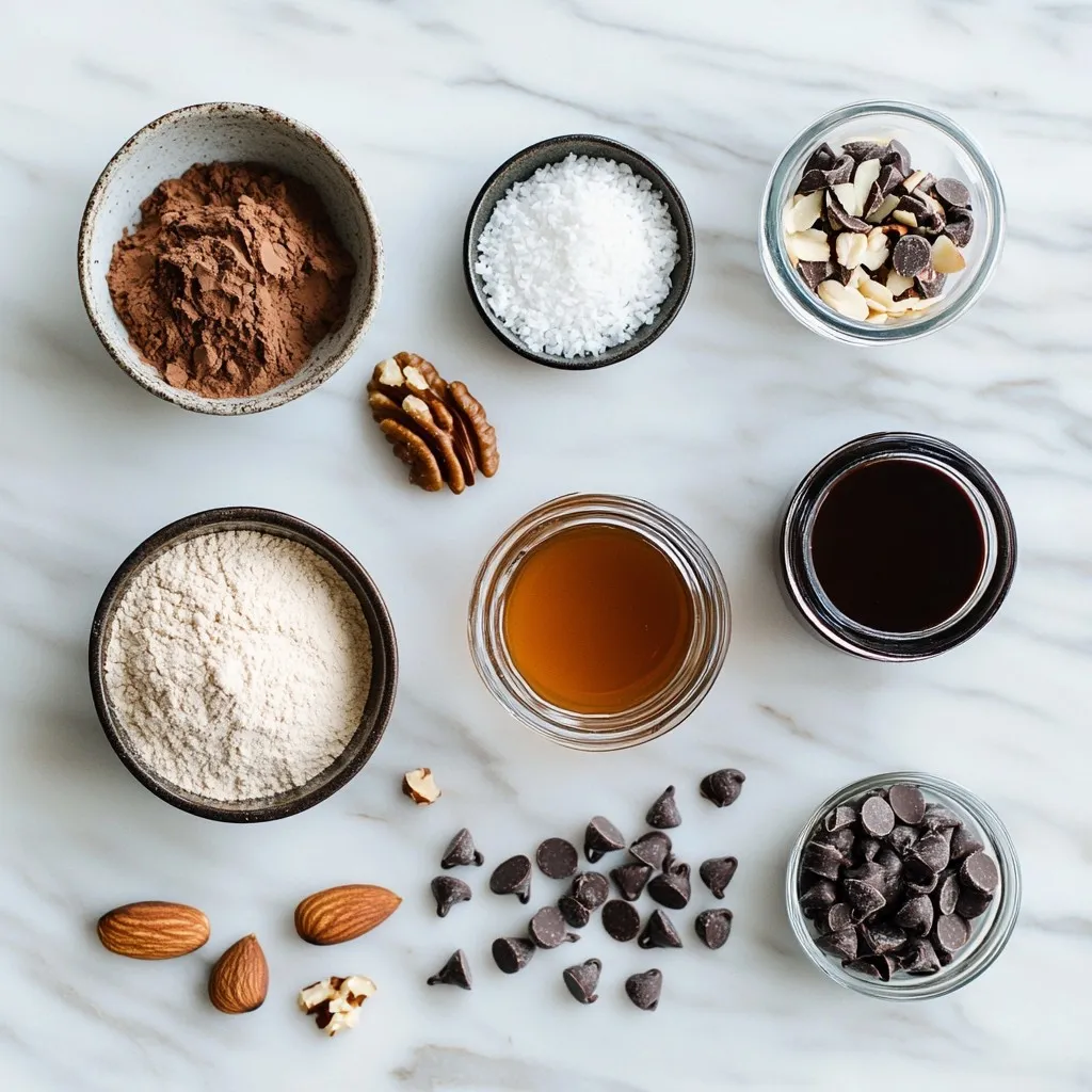 These ingredients create a rich, chocolatey base. Almond flour adds a nice texture. Cacao powder gives the brownies their deep chocolate flavor. Maple syrup and nut butter provide natural sweetness and creaminess.