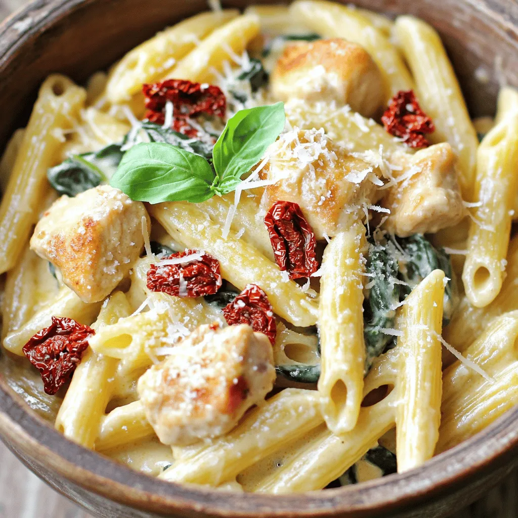 When I whip up this creamy Tuscan chicken pasta, these ingredients shine. Each one plays a role in making the dish rich and tasty. The boneless chicken adds protein and texture. The penne pasta absorbs all the creamy sauce, making each bite delightful. Sun-dried tomatoes burst with flavor, while heavy cream gives that velvety finish. Fresh spinach adds a pop of color and nutrients.