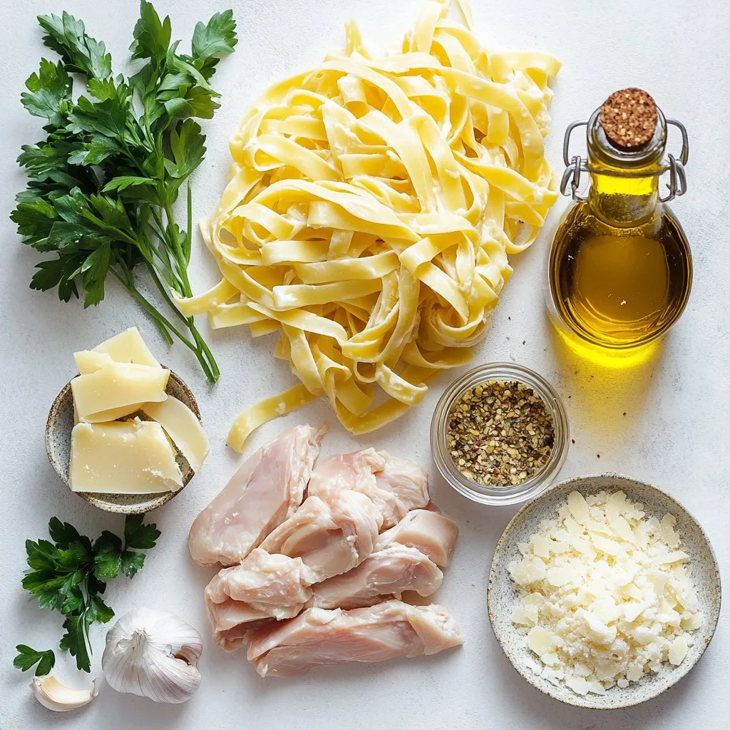 To make Chicken Alfredo Pasta, you need these simple ingredients: