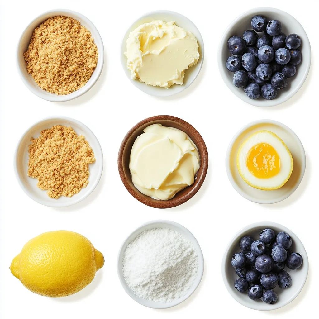 Each ingredient plays a key role. The graham cracker crumbs form a crunchy base. Cream cheese gives a rich and creamy filling. Fresh blueberries add sweetness and color. Lemon juice brings a bright, zesty flavor.