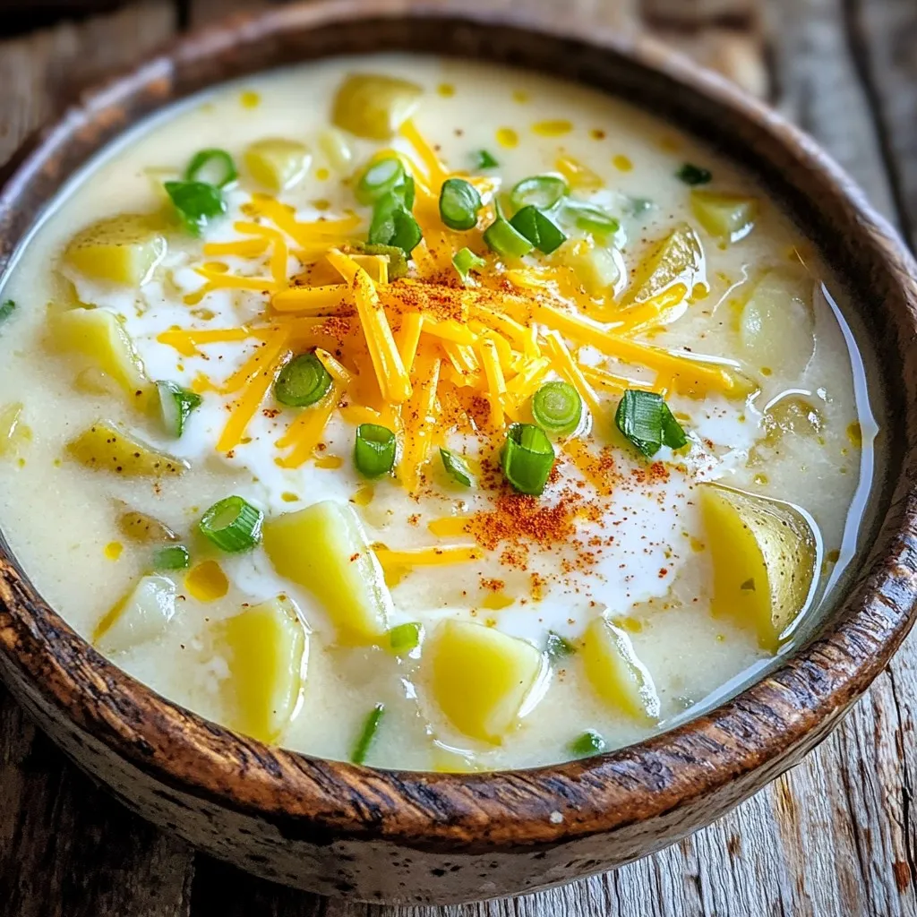 Garnishes can really elevate your soup. Cheddar cheese adds a great cheesy flavor. Sour cream or Greek yogurt gives a tangy twist. Green onions add a fresh crunch. If you want a bit of crisp, crumbled turkey bacon is perfect. Olive oil is essential for sautéing the onions and garlic. Don’t forget to season with salt, pepper, and paprika for added flavor.