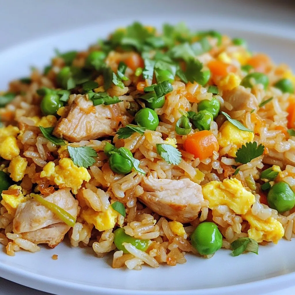 In this post, I shared a simple recipe for chicken fried rice. You learned about key ingredients like brown rice, chicken, and mixed veggies. I also covered seasonings and oils to boost flavor. You found step-by-step cooking instructions and helpful tips for the best texture. I shared different variations and storage methods for your leftovers.