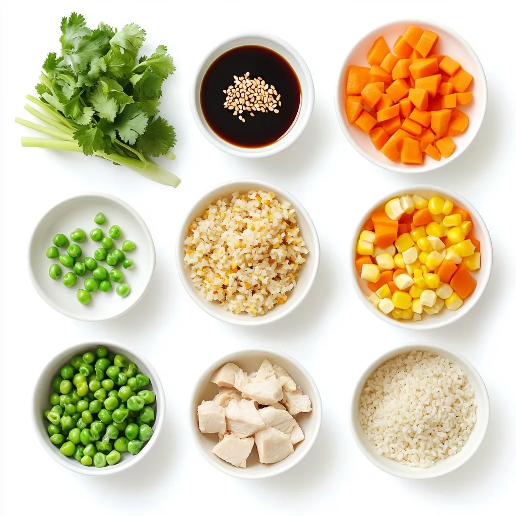 These main ingredients form the base of your dish. The brown rice adds fiber and nutrients. Chicken breast gives you lean protein. Mixed vegetables add color and crunch. Together, they create a balanced meal.